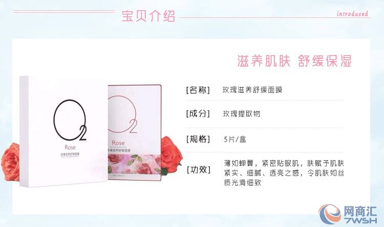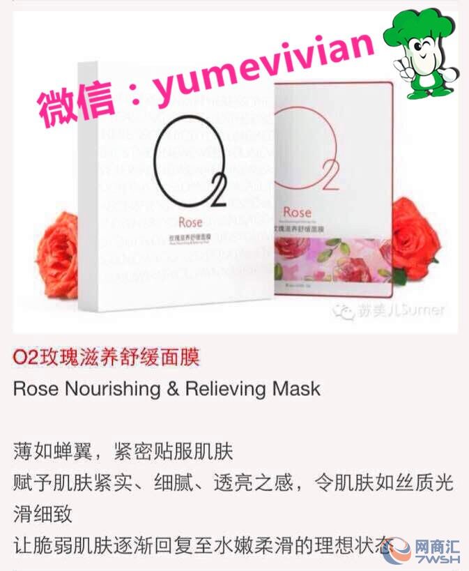 O2玫瑰滋养。O2玫瑰滋养舒缓面膜蕴含高浓度玫瑰精华,5000片玫瑰花瓣所萃取的1滴精华原料,高效美白滋养,70倍渗透力,令肌肤匀亮、光滑、细嫩。长期使用,让肌肤回复水嫩柔滑,如丝质光滑细腻。 产品特点:抗敏、修复、滋养。 O2是Sumer旗下的子品牌,还是属于Sumer,只是路线不同(Sumer走中高端,O2走大众消费)。如果你问O2效果好不好?可以用一句话来形容:“和我一样便宜的都没有我好用,和我一样好用的都没我便宜。”——O2。 O2官网:http://o2-hk.com/ O2玫瑰滋养舒缓面膜 薄如蝉翼,敷上时如同隐形,紧密贴服肌肤,透过敷膜让肌肤进入修护过程,给皮肤体验匀亮、光滑、细嫩、水润,淡化细纹、干纹, 赋予肌肤紧实、细腻、透亮之感,令肌肤如丝质光滑细致,让脆弱肌肤逐渐回复至水嫩柔滑的理想状态。 功效: 深层滋养、嫩滑肌肤、提拉紧致 适用肤质: 适合干性、中性、油性肌肤,尤其适合干燥脱皮、缺水性肌肤。 使用方法: 洁面后,小心取出面膜,按珠光膜纸在上,蚕丝膜在下的方法敷于面部,待蚕丝膜完全与皮肤贴服后再取下珠光膜纸,敷15-20分钟后将其取下,再待精华完全被皮肤吸收即可。 本产品通过国家安全质量检测。 保质期:12个月 容量:26ml?6 建议零售价 178 RMB 参考链接:http://item.taobao.com/item.htm?spm=2013.1.20141001.2.ipMkh5&id=43188765046&scm=1007.10115.6103.i43155490968&pvid=b649d289-1a3f-454a-ac10-f9b39e63ca69