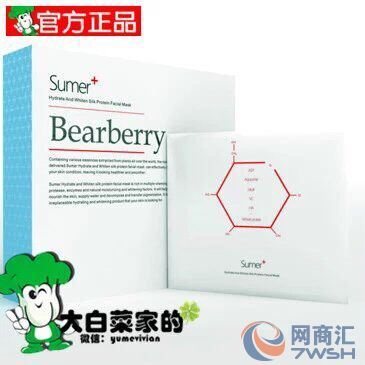 1、苏美儿蚕丝面膜Aloe芦荟 (5片/盒) 核心卖点:抗过敏、修复受损细胞、增强抵抗力、修复红血丝、补水嫩白, 主要成分: 安全温和呵护肌肤,帮助肌肤重现健康光彩。面膜含芦荟活性精华, 可抗过敏、修复受损细胞、增强抵抗力、修复红血丝、补水嫩白 2、熊果Bearberry补水嫩白蚕丝蛋白面膜(5片/盒) 主要成分: 功效: 3、Azalea祛痘收毛孔蚕丝蛋白面膜(5片/盒) 4、Lily紧致抗衰蚕丝蛋白面膜(5片/盒) 核心卖点:美白淡斑.嫩肤.深层补水. 紧致,提升,去细纹 Sumer被美容界称为爱马仕面膜,让你做一个拥有水嫩无瑕疵肌肤的女人!没有依赖性,没有激素!各种满意好评!不止一人说过感觉比SKⅡ、Lamer更好。补水是“玻尿酸”的5倍,超普通面膜的99倍;美白是“珍珠”的37倍,持续性100%!不论年龄大小,何种肤质,四款面膜总有一款适合您!! 无香精,无色素,零铅汞,纯然荟萃安全又高效的专业品质面膜。sumer采用目前先进的植物玻尿酸,每一片面膜里面都含有胜肽粉,这种胜肽粉是一种氨基酸的小分子胶原蛋白,小分子渗透大分子锁水!像雅诗兰黛,兰蔻等一线大牌用一点这个成分就非常非常昂贵!同时面膜材料全部国外进口,配合独特的国际的蚕丝技术采取世界各地纯天然原料,使肌肤对面膜精华的直接吸收高达95%以上!这就是sumer一片面膜效果远远超过普通面膜十几片的效果的道理,所以sumer不需要天天敷,开始3~4天用一片,之后皮肤状态好了一周一片维护就可以哦! Sumer公司介绍 发展历程 企业文化 电话:15019203239 蔡小姐 微信:yumevivian 淘宝:http://shop106441954.taobao.com/