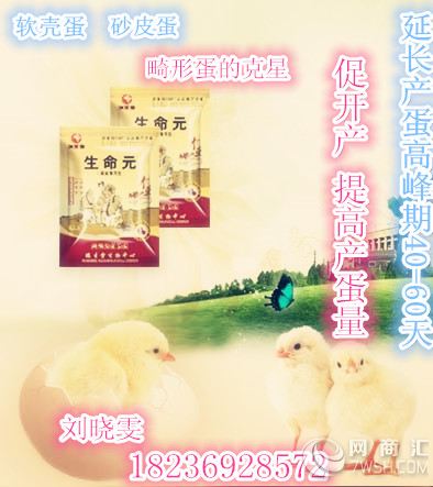 随着蛋鸡养殖业的发展,目前市场竞争比较激烈,为了获得更大的养殖效益,提高蛋鸡产蛋率是比较好的方法。近期河北省平山周边出现了不明原因的产蛋量不高,多数产蛋量只有60%左右,有的蛋鸡二百多天了一直没有出现产蛋高峰期,还有很多的蛋鸡没有开产,产蛋量很低,而且出现了很多的软壳蛋,砂皮蛋,而且很多蛋鸡出现了精神不振,食欲不佳,有的还有腿瘸的现象,对于已经这种症状的蛋鸡如何饲养才能提高产蛋量呢? 首先要先选择是中药中发酵中药产品,因为蛋禽都是敏感型家禽,另外要有五证,GMP认证资料正规和厂家都应该有只有这样才知道不是假药,有保证,我们才放心。河南圣达药业有一个专门让蛋禽增蛋促进生气系统发育的发酵中药,这个蛋禽生命元,在湖北,辽宁,河北,山东等地市场反应很好。订购热线 18236928572(刘晓雯)927337839 产品名称是:蛋禽生命元 主要成分:发酵中药(阳石起、党参、茯苓、当归、刺五加、淫羊藿、黄芪等)蛋白酶,歧化氧化酶、进口维生素等。 使用蛋禽生命元的功效 1、增蛋迅速,发酵中药吸收更快更完全,蛋禽使用7-10天即可改善蛋壳颜色,里面有效的中药成分和维生素促进卵泡的发育,进而提高蛋鸡的产蛋量,稳定提高蛋鸡产蛋量,增加蛋重增强色素沉着、使蛋壳润泽光滑,减少破壳蛋、畸形蛋、无壳蛋的比例。 2、降低蛋料比,延长产蛋期,健脾消食,补充酶系,激活内源性消化酶,将饲料消化率和利用率分别提高25%、15%,同时中药的有效成分和维生素可促进卵泡的发育。 3、强肾固本,扶正祛邪,预防和减少产蛋疲劳综合症引起的猝死,输卵管炎等症。增强禽体液免疫和细胞机体水平,降低发病率和死亡率。