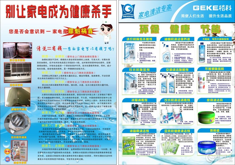 目前格科品牌在重视清洗服务的同事,深入挖掘消费者在日常生活中注意保养的意识,推出20余款高品质的家电清洗保养产品。可超市卖场上架以及自开专营店销售。真正做到消费者服务和产品双向选择。