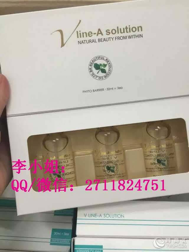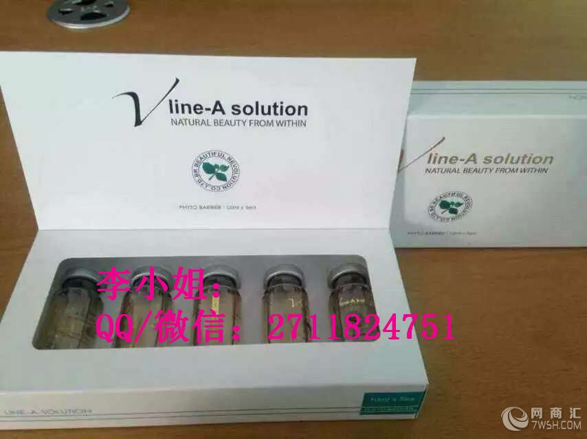 Vline溶脂针的主要成分(纯天然植物萃取的溶脂成分.绝无对身体有害的化学成分)1.豆异黄酮发酵:有抵制新脂肪细胞的产生.促进脂肪分解.改善皮肤的作用.2.维斯那定 (Visnadine) 具有强力的抗磷酸二酯酶活性.把在脂肪细胞内的环磷酸腺苷维持到高水准使脂肪酶活性化以促进脂肪脂质分解.3.肉碱 (Carnitine) 把脂肪酸运到线粒体内使氧化分解以促进脂肪分解.4.七叶素 (Escin) 抗浮肿.抗炎5.藻类提取物(Algae Extract):含丰富的蛋白质.矿物质和维他命有助于强化皮肤纹儿.(特色之二特别适合皮肤松弛的人溶脂)6.槐树花提取物↑Vline面部和身体 .结合了多代溶脂针的优点为一体.面部一盒5瓶.一瓶10ml,紧致轮廓.特别适合松弛脸颊.轮廓部位.当天微肿.第二天恢复.效果也好.基本一次能看到效果(具体情况看个人体质).身体装一盒3瓶.小胖瓶一瓶30ML.大容量