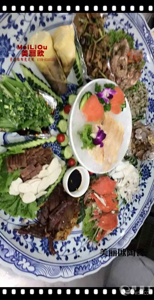 陶瓷大盘子全国订购热线:18322810551 联系人: 李飞 商务QQ:853881481 景德镇美丽欧陶瓷秉承景德镇千年传统制瓷工艺与现代化工艺相结合。使得生产的产品深受国内外客户的需求,其原材料取自于景德镇原产的高白泥简称( 高岭土)和高白釉为优质原材料。创意大鱼盘。 我们厂可以定做50公分,60公分,65公分,70公分,80公分,1米至3米大盘子。 可在盘身加字加LOGO,图案也可定制。只有您想不到没有我们做不到. 景德镇美丽欧陶瓷于在2012年推出酒店海鲜大鱼盘以来。现已为广东番禹“渔哥”酒楼、广东开平“一品天下”酒楼、大连“尚品”酒楼等一些知名酒楼定做过大鱼盘,深受广大客户的信赖与支持。其特色的巨型瓷盘与其独特的餐饮风格,独特的饮食气氛,其形成了一道特色的招牌菜系。深受广大客户的追求和喜爱。我厂生产的瓷盘画面是采用景德镇传统手工绘制的。画面有富贵牡丹、江南水乡、亭台楼阁、青花山水等经典画面,画面可以根据客户需求定做。大瓷盘的主体工艺如果想通过模具制作那是根本不可能的。原料必须采用景德镇原产的高岭土简称:(高白泥)以及传统的手工拉坯工艺成型。因此制作这款陶瓷的开始都是老师傅手工拉坯。修胚待泥胚干燥后,纯手工绘制图案。这是现代贴花工艺不可企及的。而这仅仅是其中的一部分,其后取决与窑火烧制(古有十窑七不成的说法)就像我们制作10块150公分的瓷盘就必须要准备15块泥胚。甚至可能会更多。可想这不仅是我们日用的瓷盘。更多的是一件艺术品。
