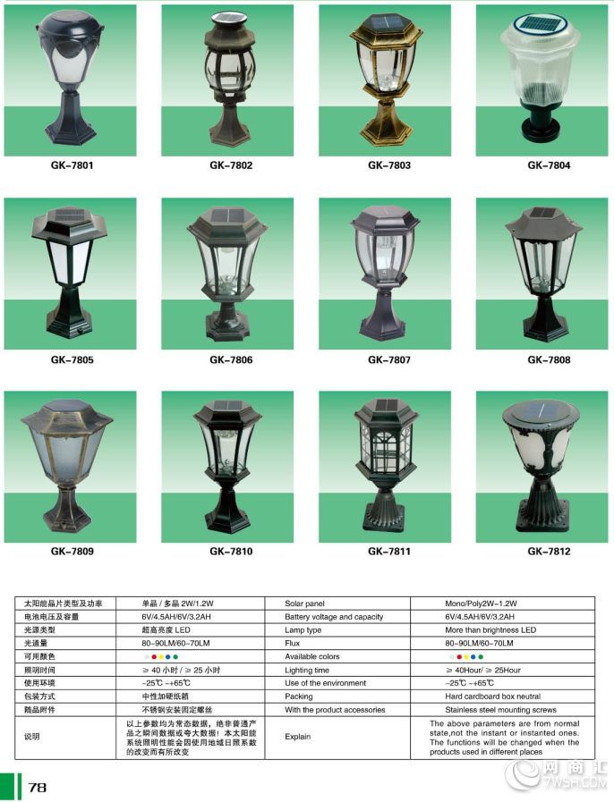 太阳能柱头灯: 灯体为压铸铝制品,灯体直径250*250*250mm配2w太阳能板,光控,天亮时自己熄灯,天黑时自动亮灯,防护等级:IP54,光源led小功率,适用于广场、公园、草坪、别墅小区等共场所的室外照明,造型新颖、美观、大方;能够延长人们的户外活动的时间,提高财产的安全 (300*300*300mm的尺寸在原来的基础加上40元 加工定制 是 品牌 每日照明 型号 JR-21901 类型 太阳能柱头灯 防护等级 IP55 光源类型 LED 额定功率 3-10(W) 电压 6(V) 日照时间 8(h) 外形尺寸 6000(mm) 寿命 99999(h) 用途 小区照明 节能环保 警示灯