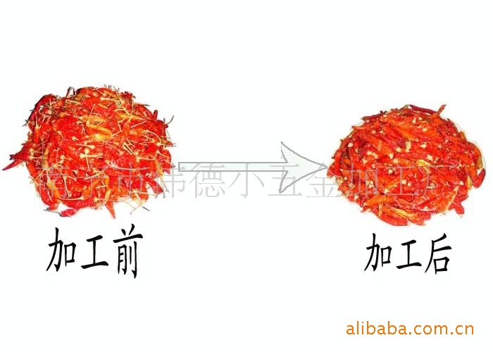 切德快单机马达功率:1.5减速机:5#网板厚度:4*1.1mm伟德牌切辣椒柄机是一种剪切辣椒柄专用的机器,主要适用于辣椒加工过程中的除柄工作。切掉辣椒把的同时不切掉辣椒的“帽子”,剪切辣椒柄的干净率达90%以上。效率高、取代了人工剪把的麻烦!