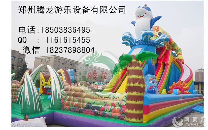 充气城堡采用专业的原材料供应商,0.45mm一等加厚,环保型PVC材料。专业的设计人员生产工艺:下料,缝纫(热合),粘整(美化),成品。尽可能多的使用双明线缝制,线迹均匀,针距控制在4.2到4.5mm之间。(能够大限度的减少漏气和增加缝纫部位的垃圾强度。)粘整刷胶宽度与粘条的宽度误差不超过正负12.5px。造型与大面连接处大限度地采用弧线结构。目的是使产品的受力均匀,增加产品的使用寿命。每两个造型之间和造型与护栏之间都有一定的安全距离。(1米)产品造型逼真,颜色搭配美观。而且能够充分保证游玩者的安全。 售后服务:终身提供维修用的胶水和角料,我公司售后服务人员将及时为您解决疑难问题,收到客户信息后,即时给予客户一个处理意见或技术指导不能即时处理的,将在24小时内与客户联系并根据实际情况提出处理意见。可使用八至十万人次左右。配送相应风机,胶水和修补材料。良好的品质,优质的服务,专业的技术,是我厂给每一位客户的郑重承诺。让您投资零风险!