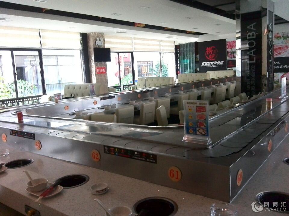回转火锅输送设备 回转火锅输送带 回转火锅设备的输送带的速度都是自己固定的,是根据日式的回转寿司模式,现已广泛应用在了回转火锅输 送设备上,回转火锅实现了传统火锅店的人力服务到科技自动服务的跨越。在前期更多的考虑运输带的设计和餐座的设计,回转火锅店面装修通 常比传统火锅店更为时尚,运输带上除了火锅食材之外还有其他小吃、水果、甜点、汤底等,让顾客还有了更多的选择性,中间避免了看菜单、 传菜等流程时间也相对较短,保证了食材的新鲜,是目前在火锅行业中为时尚方便的一种新吃法。不需要大型灶台和灶具,无需大厨,普通服务 员无需培训就能操作,简单易操作是其优点之二; 回转火锅是一人一锅,即可根据顾客喜爱选择各色菜品又符合个人卫生习惯,绿色饮食回归自然 是其优点之三;独特新颖的回转火锅设备工艺,配用现代高科技电磁炉具,没有明火,不存在安全隐患,没有丝毫油烟产生,环保,卫生是其优点之四。
