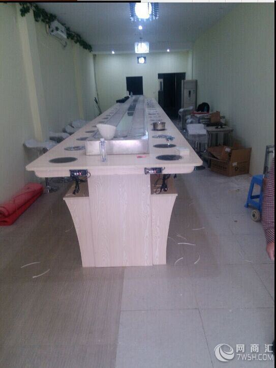 吧台型回转火锅(寿司)传送带性能可靠稳定、噪音小,安全性高、外型美观,设备动力及动力控制系统全部为台湾生产,外部导轨全部采用磨砂(镜面)不锈钢,链带采用进口尼龙链带和不锈钢链带。适用于单人、双人、多人、团体就餐不受限制,可根据店面布局进行不同设计。详细介绍:产品名称:吧台型回转火锅(寿司)传送带 设备特点:新潮时尚,外型美观,顾客围回转台而坐,单人、双人、多人、团体就餐不受限制,可根据店面布局进行不同设计。设备性能:整机性能可靠稳定、噪音小,安全性高、外型美观;设备用料:设备动力及动力控制系统全部为台湾生产,外部导轨全部采用磨砂(镜面)不锈钢,链带采用进口尼龙链带和不锈钢链带。选装部件:餐台供水、屏风隔板、传送带正反转。适用范围:回转火锅、回转寿司、旋转火锅、旋转寿司、回转自助火锅、旋转自助火锅。