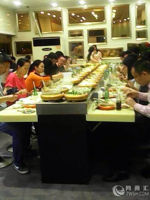 兰州转转小火锅设备 自助餐传送带由金熙旺酒店餐饮设备公司提供,自助火锅输送带是我公司自创开发的一种新型菜料自动输送设备,输送长度可根据客户的场地造型尺寸定做,输送链板采用304不锈钢制造,具有美观、清洁、卫生,输送方向,速度任意可调,是各种自助火锅,自助早餐的新型时尚的设备。传动部分采用台湾产(城邦牌)2HP-1500W变频减速电机,速比1:100,变频器采用220V,2HP-1500W.SE系列,线速2-8米/分钟 可调。寿司线,回转寿司线,回转火锅线专为大中小型餐饮连锁企业量身定做,适应了饮食界推陈出新,适应了现代人对饮食新奇的追求,必会掀起都市饮食新潮。 云升餐饮设备公司拥有自助火锅输送带双面单层回转技术: 1.360度转弯设计技术参数 2.90度转弯技术设计参数 3."T"型转弯设计参数 4.轨道设计技术参数 5.下支架尺寸,安装技术参数 自助火锅输送带均由以下部件构成 :台架系统、动力系统、输送链系统、供水系统 、轨道系统。设备主要采用304不锈钢及进口电机器元件等美观、卫生、耐用的材料制造。 我司输送带拥有以下特点: 1、整机性能稳定、安全、无噪音、易操作 2、输送链带运转平稳,机械维护可自己随时进行,使用寿命长 3、输送导轨接驳位平整、无接缝外形美观。 4、设计制作合理,链条经久耐用,其他易损部件更换简单,可自己操作 5、链片垫条采用高分子尼龙制造,具有耐磨、无噪音等、长寿命等特点 西安回转火锅设备 旋转寿司设备 自助餐传送带