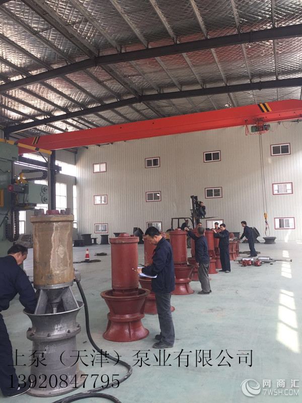 潜水轴流泵,潜水混流泵,积水坑排水泵生产厂家 上泵﹝天津﹞泵业有限公司主要生产(立式、卧式)大流量潜水轴流泵,大口径混流泵,大口径潜水污水泵,高扬程深井泵,大流量深井泵,高山提水泵,矿用潜水泵,农田灌溉用泵等。 性能参数:流量 200-36000m3/h、扬程 2-40m、功率 15-1400kW、叶轮直径 100-1000mm、泵出口口径 80-1000mm。 结构优势:泵体与电机一体同轴;电机密封采用里外双重密封加油封;叶轮采用角度可调式叶片;电机内配备检漏、测温装置。 产品性能:1、泵体与电机一体同轴,提高了转子体的同心度、减小了泵运转时对轴的损耗,延长了产品的寿命。 2、电机采用三重密封结构,解决了潜水电机漏水的问题、提高了市场竞争力、为潜水轴流泵赢得了更多的市场。 3、采用角度可调式叶片,使同一台轴流泵拥有更大的流量调节范围,厂家可以根据客户在不同情况下的需求、为客户调节合适的流量和扬程。 4、电机内配备检漏和测温装置,提高了潜水轴流泵的安全性和可靠性,也保证电机不会因漏水、过热而烧坏。 5、安装简单方便、方式多样,可以选择井筒悬挂式、井筒落地式、水池悬挂式、水池落地式、沿岸倾斜固定式等。 6、我厂的潜水轴流泵在满足国家对轴流泵的统一标准基础之上、采用新水利模型结构和潜水电机技术、为广大用户提供高质量的产品。 产品用途:350QZB潜水轴流泵被广泛用于污水处理厂,市政污水处理,泵站排洪,工矿船坞,海水提取,填海等。 我们有多年的生产制造和设计经验,可以派专业技术人员到现场指导安装调试,详细情况和报价请来电咨询。