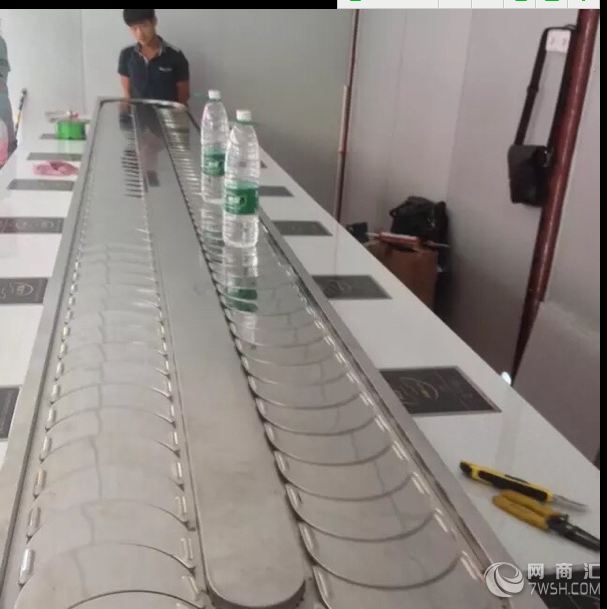 新型时尚旋转小火锅设备回转小火锅设备特点。新型时尚旋转小火锅设备回转小火锅设备特点:1、设计:由专业设计师根据客户所给的店铺平面图,客户的要求,对输送设备、座位、厨房、前台、储物室和工人休息室等场地进行合理地规划, 尽可能的满足客户需要。2、制作:技师根据输送设备的施工图制作回转输送带。3、拆解:为了方便运输的要求,技师将回转输送设备拆解成几个可组合部分。4、组装: 回转输送设备被运送到店铺以后,技师将其进行组装和调试。主要材质:采用完全符合国家餐饮器具卫生标准材质-304不锈钢、表面光亮、易于清洗、永不锈蚀。电机全部采用台湾产进口减速 机, 噪音小,经久耐用。 旋转火锅传送带电机功率400w,750w,1500w,2200w设备尺寸540?x(长度根据店面尺寸设计)转弯半径15,20,30,40,50,60,70,80,90。材质不锈钢。 变频器调节速率1:60正转反转,内置可调节辅助轮,可伸缩,电力要求220v,380v均可。提供配套相关:电磁炉(400w-800w),台面木板,不锈钢,大理石均按米计价, 下部封板同台面材质,火锅小锅,圆形吧台凳适合单人单锅形式,四人桌,凡订购我公司设备总价超过3万均赠送秘制火锅底料配方,由火锅传送带重庆店提供, 可根据当地人口味适当调节佐料。关于火锅输送带安装和售后,工厂发货,现场安装,两年质保,终身维护,至于人为原因导致设备故障的,需支付相应费用。 自助火锅店优势1节省人力,一台街边卖旋转小火锅设备少可以节省一名传菜生,一年下来就是一笔不小的费用,而传送带给我们带来的不仅仅是节省人力, 更重要的是设备的新颖性,能够吸引更多的眼球,相比传统火锅店,拥有传送带的店面更加吸引年轻人的眼球,而且吃起来方便,客人不需要东跑西跑,来回取菜, 客人多的时候服务员也不需要忙的热火朝天,客人只需要坐在自己的位子上,一锅汤底,菜品自动传到我们的身边,只需动动手,就可以拿到自己想要的菜品, 来回传送的精美菜品,更是让人目不暇接,拥有传送带的火锅店面,更加美观。2设备使用寿命超长,全不锈钢的轨道和链条,及时水撒到设备上,也不会生锈 ,因为我们选用的是不锈钢的材质,设备使用年限一般为10年,可以说是只要店面没有问题,设备就不会有任何问题。