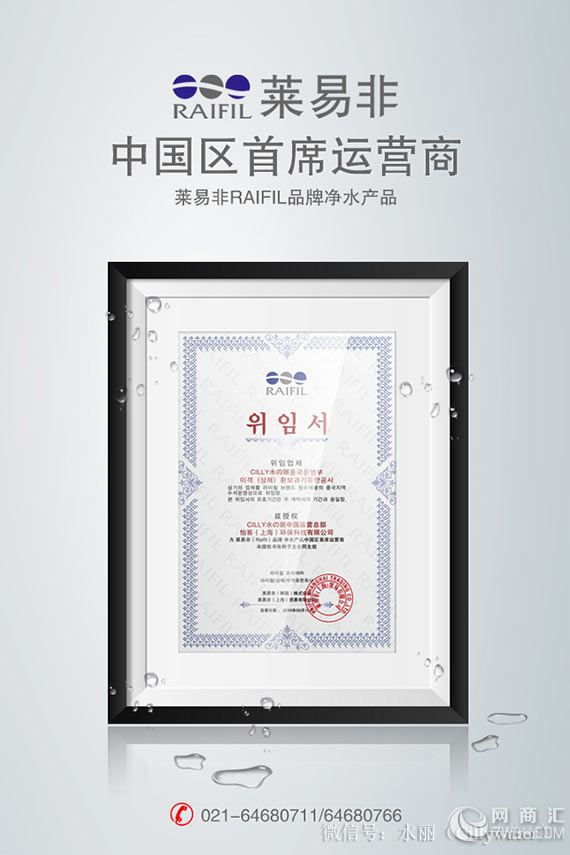 莱易非RAIFIL净水机安装视频新鲜出街 大家期待已久工作,终于有了结果——韩国原装进口莱易非RAIFIL净水机安装视频,今天正式出街与大家见面了! 小丽想要强调的是,虽然看似不长的安装视频,但这支莱易非RAIFIL安装视频的制作班底却非常的特殊,剧本、安装操作、灯光、摄像、场景、剧务、剪辑合成等等一揽子工作,完全是CILLY水の丽中国运营总部与莱易非(上海)公司的员工紧密携手担纲完成的。在此先行感谢在隐身幕后默默工作的制作团队! 此外,韩国原装进口净水机莱易非RAIFIL安装视频的配音和模特则是邀请当红DJ主播和知名模特倾情出演,以保证视频制作效果,以及在画面调性上和莱易非RAIFIL净水机的高端品牌气质相一致。 来吧,先睹为快,一起学习和掌握韩国原装进口莱易非RAIFIL净水机安装流程。 对于本莱易非RAIFIL净水机安装视频,以及CILLY水の丽系列净水机(反渗透、超滤、管线机和软水机)安装视频,以及水污染和水质检测系列工具如TDS笔、水质电解器、PH试纸等演示视频,全国各地的经销商和代理商,可随时向分管销售顾问索取对应的标清版或高清版本。 莱易非RAIFIL30秒标版广告片,也已经在后期制作过程中,敬请期待!