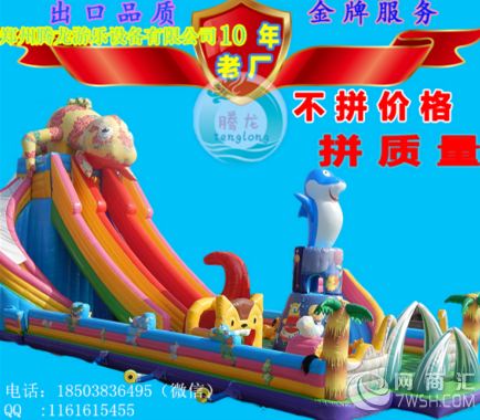 充气城堡采用专业的原材料供应商,0.48mm一等加厚,环保型PVC材料。专业的设计人员生产工艺:下料,缝纫(热合),粘整(美化),成品。尽可能多的使用双明线缝制,线迹均匀,针距控制在4.2到4.5mm之间。(能够大限度的减少漏气和增加缝纫部位的垃圾强度。)粘整刷胶宽度与粘条的宽度误差不超过正负12.5px。造型与大面连接处大限度地采用弧线结构。目的是使产品的受力均匀,增加产品的使用寿命。每两个造型之间和造型与护栏之间都有一定的安全距离。(1米)产品造型逼真,颜色搭配美观。而且能够充分保证游玩者的安全。 售后服务:终身提供维修用的胶水和角料,我公司售后服务人员将及时为您解决疑难问题,收到客户信息后,即时给予客户一个处理意见或技术指导不能即时处理的,将在24小时内与客户联系并根据实际情况提出处理意见。可使用八至十万人次左右。配送相应风机,胶水和修补材料。良好的品质,优质的服务,专业的技术,是我厂给每一位客户的郑重承诺。让您投资零风险! 水池滑梯 产品特点: 一款滑梯实现了三种从不同高度滑水的刺激,以彩虹绚丽的色彩做外表,体现了仿佛人从彩虹上滑下来的童话节界。可配1米支架水池或配充气水池。 就如雨后升起的彩虹桥一样,远观犹如人间仙境一般,让人充满奇炒的幻想,忍不住有想前去体验一番的冲动。三个滑道,有红、黄、蓝、紫四种颜色,犹如浑然天成,色彩柔和,及其结合卡通主题元素的喷画和造型,更吸引客户眼球,增加客户想玩的兴趣。 国际通用高质量柏拉图PVC夹网料,10年老厂,熟手车工,更好的控制产品工艺质量,产品质量好,更耐用,更好的结合卡通造型和配合充气泳池、支架水池的使用..55mm专用滑片料。也可以做成水滑梯,滑梯表面用粘胶技术贴合车缝线,使其不漏水,再用引水管引水到滑梯顶部,由上而下,滑梯口接水池,利用水泵做一个循环。 产品介绍: 充气滑梯,是属于滑梯系列中的一种。是由高强度PVC夹网布或更高的材料制成的充气城堡类玩具,由鼓风机充入气体膨胀成形供儿童娱乐的游乐设施。基本外形和组合滑梯等类似,孩子通过攀爬或通过特殊的通道后由滑梯上部滑下来,可心提高孩子们的意志和信心并能享受相应的喜悦。 充气水滑梯,是一种由PVC等不同材料制作而成,由鼓风机等吹气设备提前或运行中吹气造成设定滑梯造型的项目,主要辅以各种卡通造型,放置于公园、游乐场供孩子们玩乐。 产品优势: 好玩:此类新型充气滑梯设备改变了以往的坐坐、滑滑、转转的主动玩法,儿童可以发挥自己的想象主动地,发明性地去玩耍。 安全:充新型充气滑梯设备中很多品种具有惊险安慰的特点,但都有安全保障。 色彩鲜艳:设备五颜六色,色彩鲜艳夺目,采用进品颜料,不易褪色。 耐用:新型充气滑梯资料结实耐用,可玩八到十万人次左右(一般能使用三年) 结构合理:设备局部受力相对均匀,正常使用时,不会呈现撕裂现象。 可根据场地任意组合;广场,公园,体育场,俱乐部,商场内外均可营业。设备放气折叠后,体积很小,便于运输。 赚钱有道,收入可靠。 前程无忧:儿童是充气乐园的体验主题,消费群体稳定而且均具有持续消费动机。 市场无忧:占据儿童市场体验经济核心,顺应市场趋势,满足市场需求 质量无忧:充气趣味玩国所有娱乐设施均经质监局检验,同时公司提供保养方法及终身售后 创业无忧:公司提供经营指导,让创业者零经验也能够收获经营实力 发展无忧:公司根据市场需求,不断开发新产品,及时给客户推荐新款,让您有持久的经营竞争力 获利无忧:一次性投资,形成蝴蝶效应式收入增长,财源滚滚来。 多一点真诚,少一点套路。 郑州腾龙厂家直销 充气城堡 充气滑梯 水滑梯 充气蹦蹦床 充气水池 钢架水池等儿童游乐设备 品质保证 安全可靠 经营无忧。 欢迎您前来参观考察 厂址:二七区京广路南三环