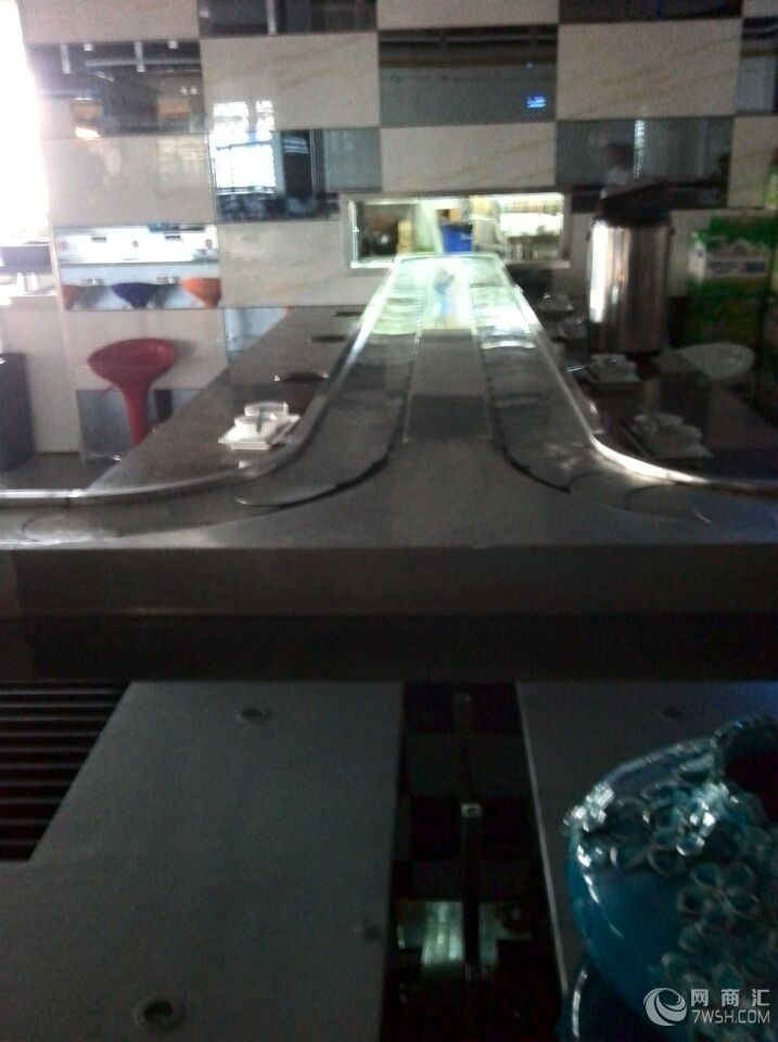 吧台型回转火锅(寿司)传送带性能可靠稳定、噪音小,安全性高、外型美观,设备动力及动力控制系统全部为台湾生产,外部导轨全部采用磨砂(镜面)不锈钢,链带采用进口尼龙链带和不锈钢链带。适用于单人、双人、多人、团体就餐不受限制,可根据店面布局进行不同设计。详细介绍:产品名称:吧台型回转火锅(寿司)传送带 设备特点:新潮时尚,外型美观,顾客围回转台而坐,单人、双人、多人、团体就餐不受限制,可根据店面布局进行不同设计。设备性能:整机性能可靠稳定、噪音小,安全性高、外型美观;设备用料:设备动力及动力控制系统全部为台湾生产,外部导轨全部采用磨砂(镜面)不锈钢,链带采用进口尼龙链带和不锈钢链带。选装部件:餐台供水、屏风隔板、传送带正反转。适用范围:回转火锅、回转寿司、旋转火锅、旋转寿司、回转自助火锅、旋转自助火锅。