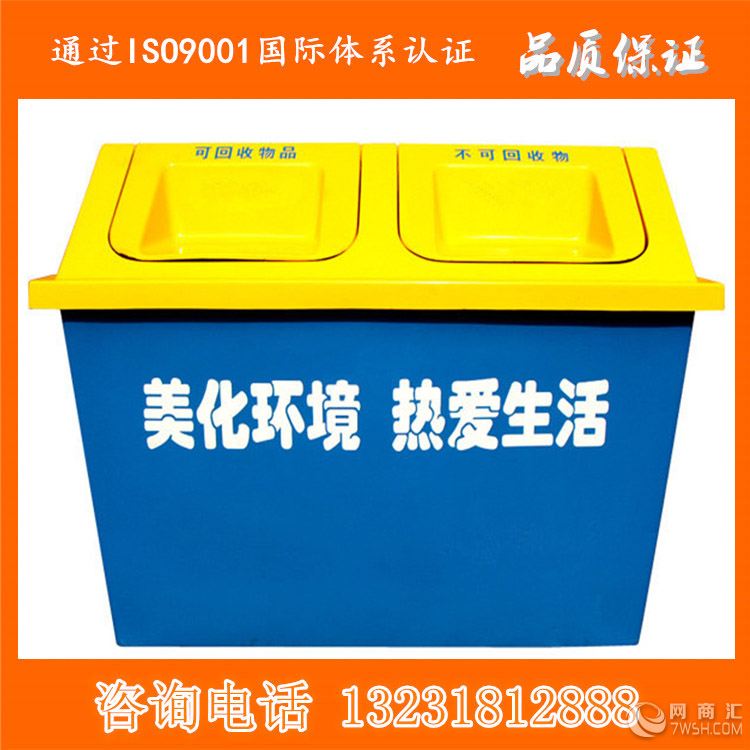 玻璃钢垃圾箱 采用玻璃钢材料制造垃圾桶,表面涂用耐紫外线照射和抗老化作用胶衣层,使产品外观鲜艳、色泽亮丽,深受各地市场的认可,同时玻璃钢果皮箱垃圾桶,还具有轻质高强、防腐防盗等特性 本公司专业生产各种垃圾桶、户外垃圾桶、分类垃圾桶、钢木垃圾桶等几十种环保塑料产品。广泛应用于生活小区、公共场所、园林绿化、宾馆等场所。采用国际标准的原材料进行生产,产品具有美观、耐用、防腐、环保等优点,对改善人类的生活环境和工作环境起到一定的推动作用。 本公司生产的垃圾桶外观精美,豪华气派,特殊防锈工艺形成可靠防锈底层色彩持久,耐候性强,有室内室外两种,品类繁多,室内垃圾桶适合排放在通道两侧,大堂,公司等高级场合。室外桶适合排放在马路两侧,公园等公共场所,本公司还推出各式客房垃圾桶,采用优质钢板制成,表面经专业处理后喷塑成各种颜色,常备有亚黑,玫瑰红/杏色等颜色选择,底脚加橡胶垫圈,上口有不锈钢圈可以固定垃圾袋,能有效防止垃圾散落,小巧方便,欢迎新老客户咨询。 ??