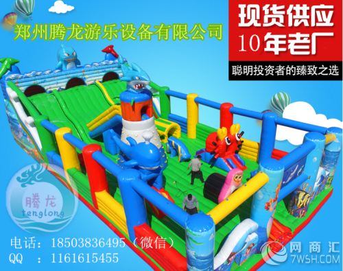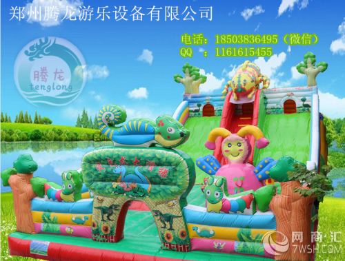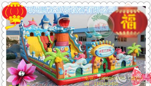 山西pvc充气城堡 充气滑梯 充气攀岩 水滑梯 厂家直销终身免费售后 场地要求: 地面平坦,无尖利物. 充气玩具的使用寿命: 一般一件玩具可使用十万人次左右(四年),若注意使用环境,设备的正常操作及维护,可延长使用寿命. ?保养与维护: 此产品为连续充气形式,且送风量较大,为了使玩具有良好的弹性,此类玩具的某些部位是需漏气的,否则玩具过硬会影响娱乐效果.另外,若觉得玩具漏气量较大需要修复时,修复方法也很简单,就象修补自行车轮胎一样.只需要使用我公司提供的PVC材料和专用粘接剂即可修复.