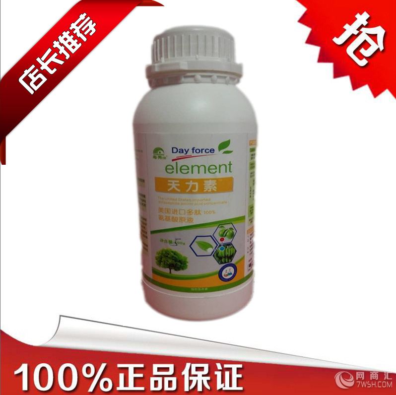 粤秀植保天力素多肽氨基酸叶面肥 叶面施肥是植物吸收营养成分的一种补充,来弥补根系吸收养分的不足,叶面施肥不能代替土壤施肥。叶面肥是营养元素施用于农作物叶片表面,通过叶片的吸收而发挥基功能的一种肥料类型,按照作用类型叶面肥可分为营养型、生物型、调节型、复合型叶面肥,根据功效作用不同广泛应用于果树、蔬菜、粮油作物的各个生长时期,达到补充营养促进增产增收的目的。 郑州粤秀农业科技有限公司生产的天力素多肽氨基酸叶面肥,是一款广谱性、高效植物营养、生长调节剂,对于各种经济作物均有明显的增产作用。详细来说粤秀植保天力素多肽氨基酸植物叶面肥有以下几大功效: 一:吸收快 相对于土壤施肥,喷施粤秀植保天力素叶面肥能有效的通过叶片将植物所需的各种营养吸收,营养元素直接从叶片进入植物体,参与作物的新陈代谢,见效快而直观,相对于土壤施肥见效时间减少一倍以上。 二:作用强 作物喷施天力素多肽氨基酸叶面肥能有效调节植物各个生长环节,迅速补充植物所需营养元素,促进作物光合作用,提高作物叶绿素含量,促进根系发达和壮苗成长。促进花芽分化,提高开花坐果率,减少畸形果,有效防治早衰延长果实采摘期,还具有增糖着色防治裂果,从而达到增产效果。而且还能有效预防作物缺素症,增强作物抗旱、抗涝、抗病和缓解药害的能力,尤其对作物黄化病、枯黄病、病毒病有较好的抗逆性,同时有效杜绝真菌、细菌对作物的侵害。 三:用量少 叶面施肥一般用量较少,特别是对于硼、锰、钼、铁等微量元素肥料,采用根部施肥通常需要较大的用量,才能满足作物的需要。而叶面施肥集中喷施在作物叶片上,通常用土壤施肥的几分之一或十几分之一的用量就可以达到满意的效果。 四:施肥简单 粤秀植保天力素叶面肥可以大部分杀虫杀菌剂混合使用,还可以达到相互增效的目的,一次喷施可以在增施营养的同时还可以达到防虫防病的目的,减少农民劳动成本。 使用产品注意事项: 1、本品可与中性、酸性农药混用,相互增效; 2、避开中午喷施,若喷施后4小时遇雨需补喷; 3、如有沉淀,摇晃均匀后使用不影响效果; ————————粤秀植保————————