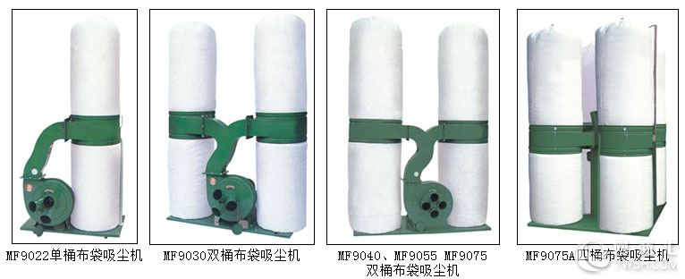 型 号:MF9022 功 率:2.2kw 风 量:2.3m3/s 风 速:20-25m/s 桶 径:480mm 重 量:50kg 吸风口尺寸:ф4"?3 集尘袋尺寸:ф480?2 型 号:MF9030 功 率:3kw 风 量:3.1m3/s 风 速:35-45m/s 桶 径:480mm 重 量:75kg 吸风口尺寸:ф4"?3 集尘袋尺寸:ф480?4 型 号:MF9040/MF9055 功 率:4kw/5.5kw 风 量:4.4m3/s-6m3 风 速:35-45m/s-40-45m/s 桶 径:630mm 重 量:95kg 吸风口尺寸:ф4"?4/ф4"?6 集尘袋尺寸:ф630?4/ф630?4 广泛主要用于家具、木业、鞋业、 化工业、粉体集尘、金属研磨、环保应 用、塑料等制造行业。