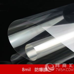 8MIL 安全防爆膜 8MIL防爆膜的主要功能: 1、透明防爆 2、阿布气压表防爆增强美观 3、贴家具电器起到保护的作用 应用范围: 浴室客厅推拉门、家里有小孩的窗户玻璃、柜子镜子!高级住宅、别墅、大型商场、珠宝店、临街店面、机场、车站、码头、幼儿园、学校、银行玻璃安全必备! 总之安全防爆膜的作用还是很广的,只要细心的人就会发现其实生活中很多地方都用到了。 参数: 8mil: 产品厚度 8mil(50 micron)