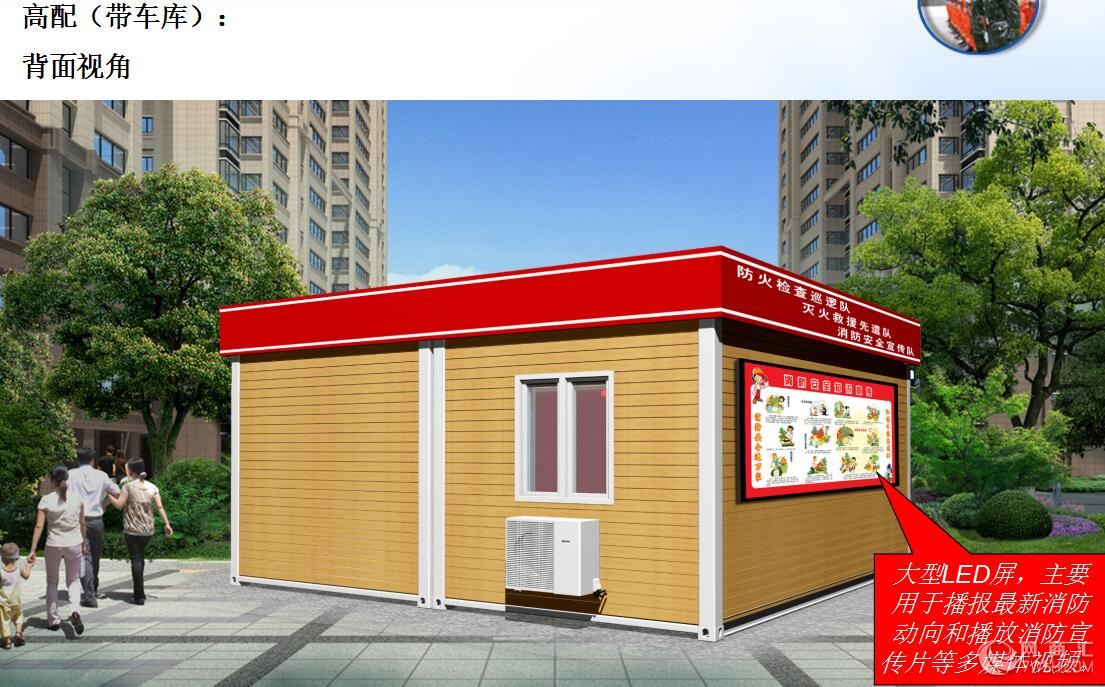 销售热线: 联系人:张倩 手 机:18752901698 Q Q:18752901698 E-mail: sale14@brtjs.com 2015年11月11日部消防局制定下发了《消防安全重点单位微型消防站建设标准(试行)》和《社区微型消防站建设标准(试行公消〔2015〕301号),进一步明确了微型消防站的建设内容、标准和要求。省消防总队下发了《关于进一步加快微型消防站建设的通知》(苏公消﹝2015﹞58号),全市掀起了轰轰烈烈的微型消防站建设活动,但是由于标准不统一,以及受场地、经费和重视程度的影响,各地建的微型消防站是五花八门,实用性和使用效率大打折扣,为了便于建设和推广,使微型消防站充分发挥应有的作用,扬州市消防支队联合辖区重点单位中集集装箱有限公司联合研发了撬装式微型消防站。 撬装式是指将功能组件集成于一个整体底座上,可以整体安装、移动的一种集成方式。所谓撬装是由设备的移动、就位使用撬杠就可方便地进行,虽然现在都使用起重设备或叉车。 撬装式微型消防站主体由集装箱模块拼搭而成,集消防车库、器材库、值班室、通信室、宣传室等功能于一体的可移动式模块化的消防执勤设备。具有可拆卸、可移动、建成速度快等特点。可以根据需要安装设置在不同区域的不同的位置上,且多个这种移动式模块化的消防执勤设备可以构建成机动性更高,反应速度更快,消防保护半径得到优化后覆盖面更广的消防联防体系。 1、绿色、安全、节能、环保。撬装式微型消防站主体由集装箱模块拼搭而成,性能稳定,安全系数高,箱壁内填充岩棉保温隔热,可安装空调。该消防站在搭建过程中不会产生建筑垃圾,可移动重复利用,的绿色、安全、节能、环保。 2、占地面积小,场地灵活,无需土建,设置简单。城市中心或老城区土地紧张,同时面临规划部署的消防站无法服务到该片区,对于重点单位重点部位无法新建消防站又离现有消防站较远,这些地方和部位都是消防重点保卫对象,撬装式微型消防站设置简单方便,弥补了重点部位消防力量不足的缺陷。 3、统一式样,统一配置,建设周期短,交付使用快。传统的固定式消防建筑,首先要取得用地规划许可,然后还要通过一些列的审批流程,后才进入土建实施阶段,整个周期耗时较长,而撬装式微型消防站作为临时性建筑,只要有一块空地就可设置,可根据保卫任务的转移而转移;设计统一美观的式样和标志,模块化批量生产,统一配置器材配置,从订货到投入使用只要几天时间。 4、功能齐全,模块化设计,可随意组合。撬装式微型消防站集消防车库、器材库、值班室、通信室、宣传室等功能于一体,由于是模块化设计,可随意增加或减少功能,重新组合安装。