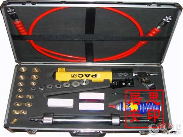●无火花注入式堵漏工具整套包含:孔径25mm自动注胶抢(抢膛19或25组合体)、手动液压泵(附快速接头)、高压油管(附快速接头、60MPa压力表)1根、配套无火花铜合金材料制作的注射阀、换向接头、注射弯头、螺栓孔注胶螺母接头、专用注胶螺栓等26个配件,松锈剂、胶棒、ABS防爆塑料专用工具箱。
