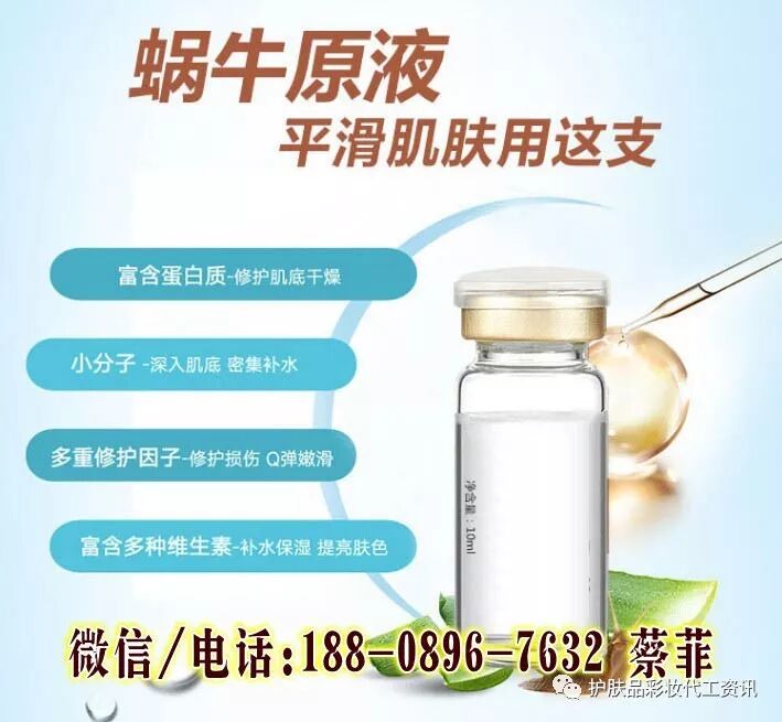 蜗牛原液加工/精华眼霜加工oem 蜗牛原液加工、植物补水原液贴牌、蚕丝面膜加工、五件套护肤套盒加工、护手霜加工、氨基酸植物洁面乳加工、快速去眼袋眼霜OEM、微商快速去眼袋眼霜代加工、液态超声刀代加工厂家、涂抹式水光针代加工、CC霜贴牌厂家、广州市法曲化妆品有限公司是专业美容化妆品OEM/ODM加工实业公司代工咨询:18808967632 蔡经理 蜗牛修复原液加工OEM方式: 蜗牛修复原液加工——欢迎广大客户实地参观 ,现场洽谈!恭候您的光临! 合作财富热线:18808967632 蔡经理 在线洽谈:1745424948