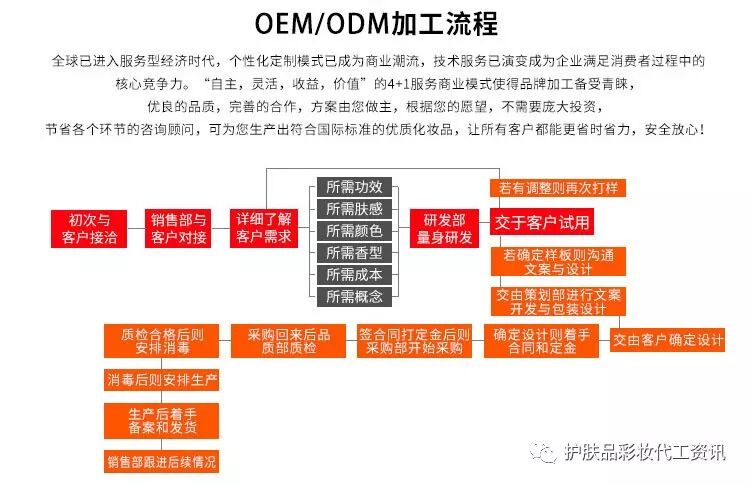 ①、有实力的化妆品代理商,计划推出自己的品牌,但不清楚品牌策划设计,也没有经验和时间去购买包材,想委托法曲公司ODM品牌输出,一站式服务;