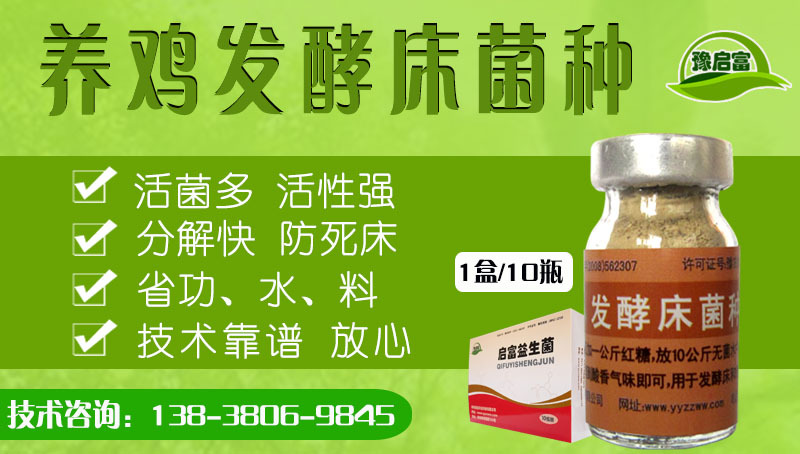 品名:豫启富发酵床菌种; 温馨提示:选择品牌的发酵床菌种才是做好养鸡发酵床的关键! 好的产品品质不是吹出来的,目前市场上的牌子鱼龙混杂,大部分都是二代三代甚至代数更高的繁殖菌,甚至吹嘘几块钱就能制作几十平方的养鸡发酵床面积,更有甚着保证发酵床使用年限达到5年以上,,,不管你信不信,作为一个负责任的公司是不会这样说不会这样做的,不乏有很多用户被这样的字眼给吸引住,后浪费了人力物力得不偿失。 所以您需要的不止是一个好的发酵床菌种,还需要一个贴心的技术员为您在养鸡发酵床使用过程中保驾护航! 想先了解发酵床基本知识的朋友可以联系138-3806-9845(手-机-微-信-同-号),获取发酵床养鸡技术资料! 郑州启富农业科技有限公司成立于2008年,占地100多亩,主营业务投资规模过1000万元,集生物活菌的研发、生产、销售于一体;励志于养殖技术咨询服务,发酵床养鸡,发酵床养猪技术咨询服务,专业粗饲料发酵技术,有机肥发酵技术,养殖,种植,水产农业技术开发,技术咨询,技术推广等等。益生菌是对人、动物、植物有益的菌,能改善机体微生物和酶的平衡,刺激特异性和非特异性免疫机制,抑制有害微生物,合成营养物质和消化酶,改善周围环境等。持效期长绿色环保,符合循环经济和可持续发展方向。 生态启未来!科技富四方!郑州启富农业科技有限公司!现面向全国各地级 市、县、区广招代理商!丰厚的利润空间!严格的区域保护政策!欢迎来电咨询!咨询热线:138-3806-9845(微-信)扫描下方二维码可获赠启富产品技术资料一份!订购提供全程技术跟踪服务!