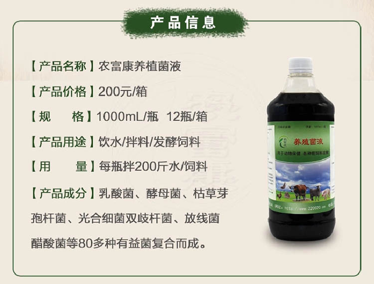 农富康养殖菌液 1000ml/瓶,12瓶/箱,230元/箱,产品咨询:135-2643-6670(微-信-同-号)