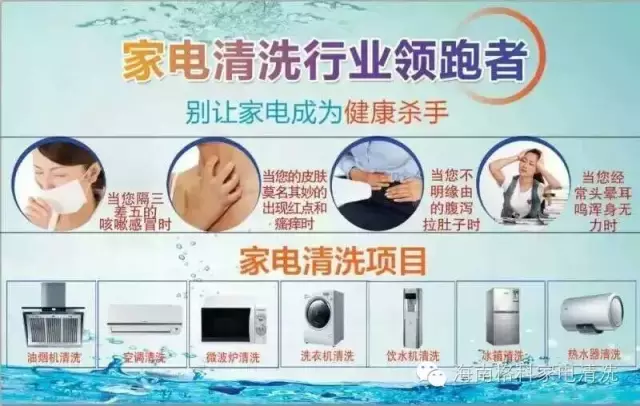 什么是家电清洗? 当我们喝着饮水机烧千滚水,担心污染的时候; 当我们面对油腻不堪油烟机和厨房灶台时候; 当我们吹着空调带给夏日冰凉,可空气中迷茫难闻异味的时候; 当清洗衣服的洗衣机成为二次污染源,危害家人健康的时候; 当冰箱本身都无法保证清洁卫士的时候; 当舒服洗完热水器却引发皮肤过敏不适的时候; 当太阳能、地暖不再能为你提供热量,带去方便的时候; 当为我们提供舒适生活的这一切家电遇到以上各种状况的时候,这都在提醒我们我们家电也需要进行清洗了! 随着社会不断进步,人们告别了生活能过就行,东西能用就行的时代,迎来了人们对生活更高水平的追求,健康是我们身边必不可少的话题,家电在使用过程中造成的二次污染一直都没有停止过,它一直困扰着我们的生活,在国外家电清洗行业已经经过了40多年的发展,已经成为一个相当成熟的市场。 近些年,家电行业的如火如荼,使得售后服务行业异军突起,家电清洗作为后市场消费的核心服务之一,需求显然火爆。空调洗衣机、冰箱、吸油烟机等,在长期使用后,如不注意清洁,同样容易变成滋生细菌的温床。定期对家电进行清洗不但可以带来一个舒适健康的环境,还可以提高整机使用效果、延长家电使用寿命,既可节省电费又能减少维修费用,因此现在越来越多的市民都在寻找家电专业清洗店。 家电清洗行业利润: 目前国内很多地方已经有专业的家电清洗店出现,但还有一些地方存在街头流动游击队清洗的现状,或者是附带找做家电维修售后、家政保洁的人去清洗。接通流动队伍促销用户信任危机;家电维修售后价格极高或者只是简单的清洗了事;家政保洁只是进行外观清洁,没有专门的清洗服务人员。 而开一家专业的家电清洗服务店可从事专业的清洗服务,也可销售一些清洗保养产品。以50万人口的县城计算,少10万户家庭,以年服务县城总户数的3%(即3000户)每户消费200元计算,年的销售额可达到60万元。如但是做清洗服务,成本不会超过销售额的10%。家电清洗完全是一个利润可观的行业! 海南美佳是以海南省为数不多以省份冠名的实体生产企业,工厂坐落于海口市国家高新技术产业开发区A-16地块,拥有数千平米的标准生产厂房以及数百名员工,研发方面拥有独立的实验室,同比利时IC集团、欧洲以及国内的多家大型研发机构合作。采用比利时进口食品级原料,产品通过国内食品级认证以及国际机构的严苛SGS检测认证、ROUS认证,美佳工厂以及生产ISO9001-2008质量管理体系认证。海南美佳旗下分“OEM事业部”以及“格科家电清洗全国连锁事业部”。 格科家电清洗咨询合作热线:18808987332(同微信号) 邓经理