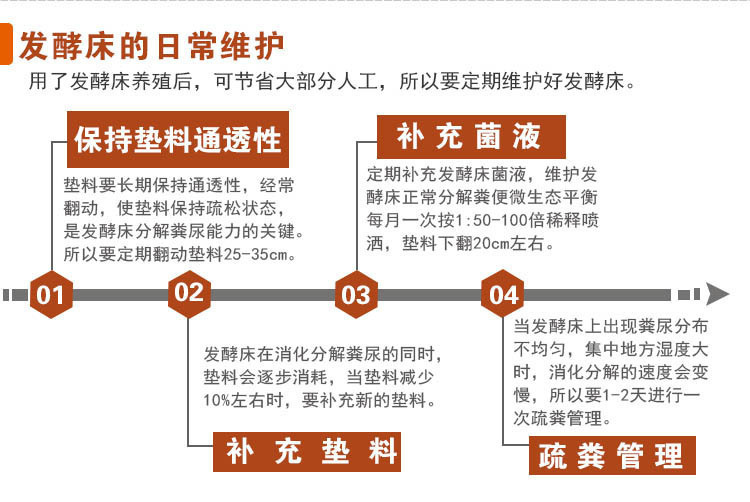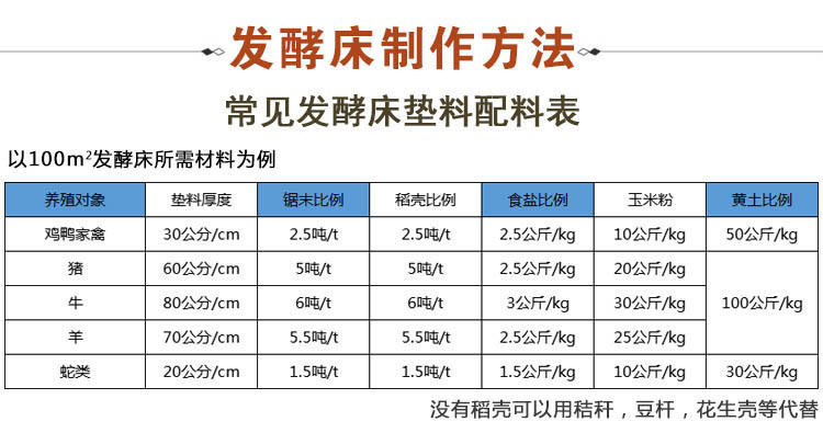 进入秋冬季节,天气越来越冷,养鸡户都室内养鸡,不能经常在室外散养,那么问题来了,室内每天堆积的鸡粪很多,清理鸡粪会消耗大量的人工和浪费资源,有没有两全其美,事半功倍的好办法呢?发酵床养鸡技术已经用的很普遍了,那么,发酵床对鸡有什么好处?得用什么垫料使用效果好?制作步骤麻烦吗?寿命是几年?后期怎么维护?制作成本高不高?等等这一系列问题都是养鸡户所要考虑的问题,今天我来给大家做详细的说明。 农富康发酵床菌种由乳酸菌、酵母菌、双歧杆-菌、芽孢杆-菌等几十种益生菌复合而成,可通过益生菌的群体优势作用集粪便分解、除臭、调节牲畜肠道平衡、提高免疫力、生物杀菌消毒等作用于一体,改善养殖环境,提高养殖效益 农富康发酵床菌种做发酵床养鸡的好处: 1、节省人工 3、抗病促长![]()