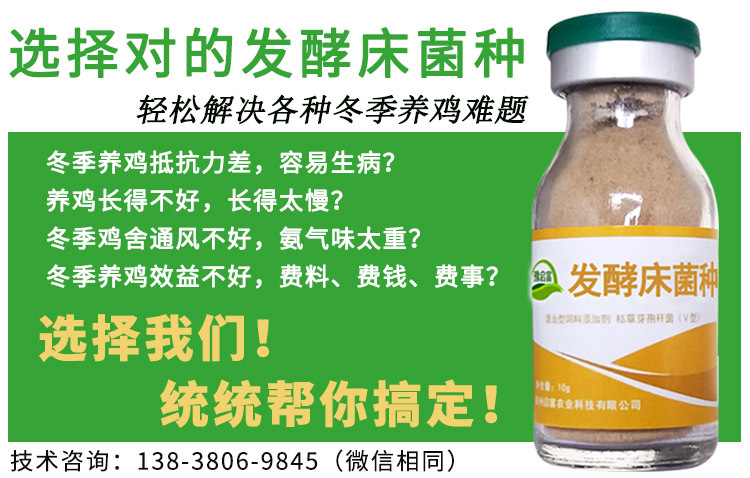 冬季气温较低,我们在养鸡的时候往往鸡的抵抗力都会下降,比较容易生病,天太冷长得也不好,长得慢,并且我们在保证鸡舍鸡棚温度的情况下,经常会忽略鸡舍的通风问题,时间久了鸡舍里就会产生浓烈的氨气味,又会造成鸡大量的发生肠道疾病、呼吸道疾病等等,这就形成了非常难办的局面!其实针对以上种种问题,我们可以采用发酵床养鸡技术,来避免这些不利情况的发生!文章代码:20180105poiuyt。但是:发酵床养殖往往没有我们想象的那么简单,随着发酵床养殖越来越流行,现在市面上各种各样的发酵床菌种都有卖,鱼龙混杂,有好有坏,这也成为有些人在使用发酵床养鸡时效果不好的主要原因!并且能卖出这种产品的公司,估计也很难真正了解到发酵床养殖技术精髓!更别说指导客户用的好了!甚至一点不夸张的说,那些公司,正规吗?生产许可证有吗?经营许可证有吗?没有这些,他们的生产,销售本来就是不合法的!那么我们该如何选择正规的养鸡发酵床菌种呢?豫启富养鸡发酵床菌种:豫启富厂家上市十年,是正规、合法的生产、销售、于一体的养鸡发酵床菌种厂家,亲自研发生产的养鸡发酵床菌种,是一款制作养鸡发酵床专用的复合微生物菌。使用该产品制作养鸡发酵床分解粪便效果好、防死床、可用年限久,并且厂家在您订购产品的同时,会免费提供给您养鸡发酵床的制作与后期维护技术!让您在制作养鸡发酵床的过程中更加得心应手!制作养鸡发酵床选择豫启富厂家的5大理由: