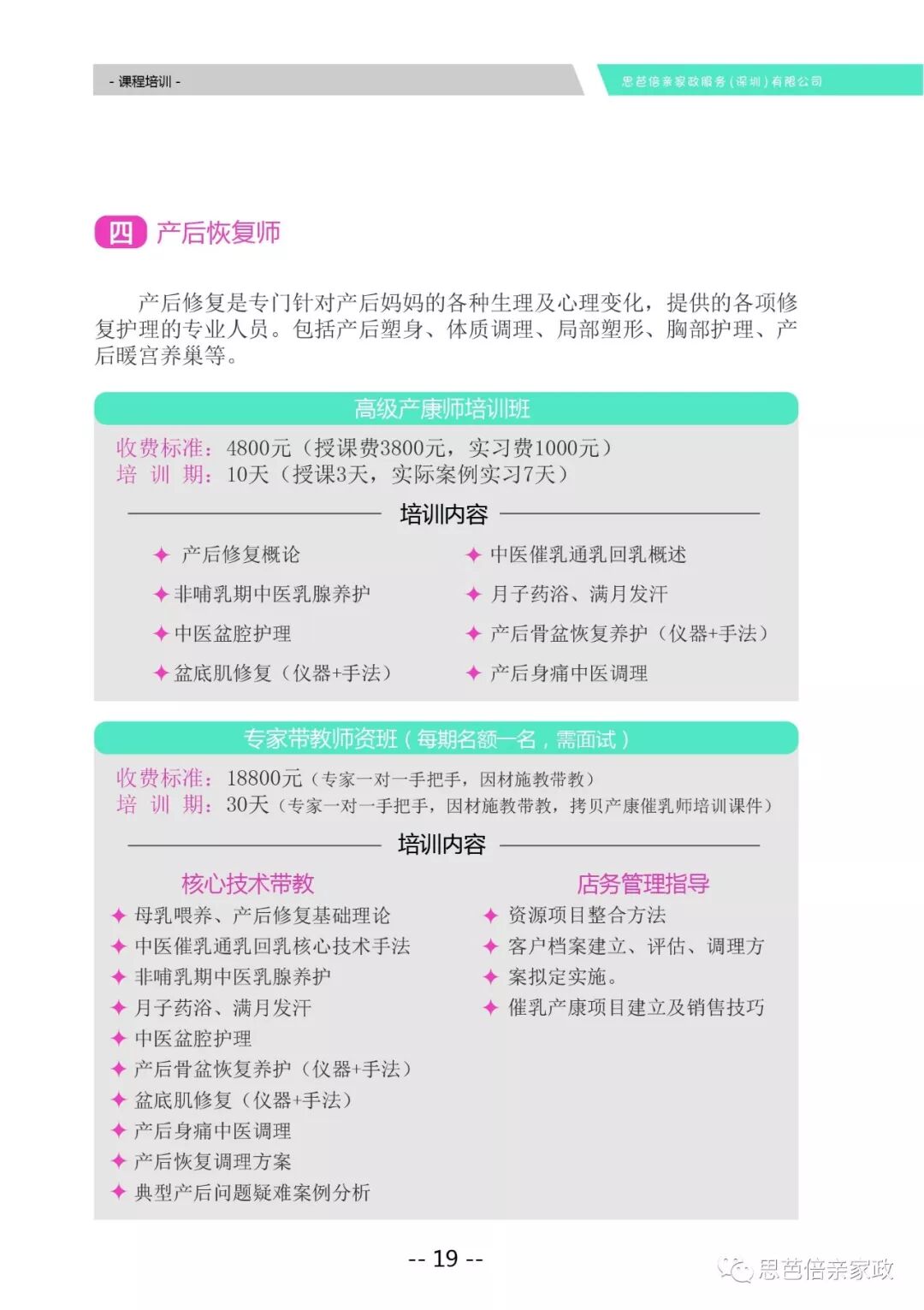 新的一年,每个人都怀揣梦想往前冲,究竟要如何实现自己的梦想呢?思芭倍亲有几点建议与你共勉。 首先你要有决心。一个人能获得多大的成功,首先取决于他的决心有多大。如果改变现状只是喊一句口号,雷声大雨点小,那无异于痴人说梦。想要找到好工作,收获满意的工作场地或薪资,实现梦想一定要有坚定的决心。决心也是一种态度,他将激励你沉得下心,才会有破釜沉舟,放手一搏的勇气。 其次你要有计划。凡事预则立,不预则废。有了计划就相当于有了明确的目标,才能充分调动自己的积极性。提前计划,还可以让自己的实现梦想之路有章可循,避免走太多弯路,从而把大的精力放在重要的事情上,提高做事效率,达到事半功倍的效果。 后你要有实力。这是重要的也是难的。随着市场经济的不断完善和市场竞争的日趋激烈,社会对“人才”的需求正发生着微妙的变化,即从注重文凭向注重实操能力转变,更需要求职者不仅拥有一项好的专业技能,还得有良好的职业素养,不仅仅是技术还有表达能力、应变能力以及统筹建设等各种能力。 思芭倍亲家政,深圳市民心中顶呱呱的家政高端品牌,专注于母婴护理服务和母婴护理培训,包括催乳服务、陪护、家庭月嫂、育婴师培训、催乳师培训及月嫂培训。其中已面向全国培训出催乳师、母婴护理员多人,为90%以上的学员提供了就业岗位。如今,思芭倍亲家政与多家公司合作订单不断,欢迎大家踊跃报名参与。 (一)月嫂培训: 1、婴儿生活护理(洗澡、换尿布、衣服、喂奶、饥饱的观察等)。 2、专业护理(口腔、脐部、臀部、湿疹、皮肤护理、大小便观察、尿布疹处理等)。 3、婴幼儿体能训练(抚触、被动操、游泳等)。 4、婴幼儿早期智力开发和生活习惯培养。 5、产妇生理护理、催乳开奶、科学饮食、哺乳指导、产褥卫生指导及护理。 6、产后体形恢复、身体康复及乳房保健。 7、指导母乳喂养、人工喂养、亲子教育及心里辅导。 课程费用:2280元 课程时间:8天,全天上课,滚动开班,上午理论,下午实操,随到随学,学会为止,包吃包住,推荐就业,权威证书,全国通用 (二)育婴师培训 照顾0-6岁宝宝的生活起居,活动安全,知识早教,品德引导。专业的育儿嫂和育儿保姆,是帮助您科学育儿的好帮手。按宝宝不同月龄的神经发育特点,给予相应的护理培养和训练指导,包括以下几种: 1、生活护理:饮食、饮水、睡眠、二便、三浴(阳光浴、空气浴和水浴)、卫生、衣服、玩具清洁。 2、保健护理:日常护理、预防意外伤害、合理安排营养与辅食的添加。 3、启蒙开发:音乐智能训练、大动作(抬头、翻身、坐、爬、走、跑、跳)训练和精细动作(手、眼、脑)协调。 4、体能锻炼:循序渐进地做婴幼儿主动被动操和有益于婴幼儿身心健康的运动 课程费用:1980元, 课程时间:7天全天上课,滚动开班,上午理论,下午实操随到随学,学会为止 包吃包住,推荐就业,权威证书,全国通用 (三)催乳师培训 1、 乳房的生理解剖:乳房的位置、形态;乳房的结构;乳房的发育;乳汁的分泌。 2、 催乳的基本知识:催乳的定义;催乳的意义;催乳的时间。 3、 催乳的理论知识:气血津液与乳房的关系;五脏六腑与乳房的关系等。 4、 无乳的原因。 5、 缺乳的病因、病机。 6、 催乳的按摩手法。 7、 催乳的其他疗法。 8、 产妇常见乳房问题。 9、 母乳喂养指导。 10、乳房保健知识与方法。 课程费用:3980元, 课程时间:10天全天上课,滚动开班,上午理论,下午实操随到随学,学会为止 包吃包住,推荐就业,权威证书,全国通用 培训需知: 1、年龄28-45岁,初中及以上学历,已婚已育,培训后能立马在公司接半年以上订单,会普通话。 2、身体健康,无传染病、妇科病、皮肤病、狐臭等。 3、携带二代身份证原件及近期1寸免冠照3张。 选择正规公司,就业有保障,快来报名学习,改变你的收入。 思芭倍亲家政服务(深圳)有限公司 地址:深圳市罗湖区嘉宾路2001号阳光酒店B座写字楼907室 附近公交站:阳光酒店,金城酒店,金光华广场,罗湖医院 附近地铁:1号线国贸站A/B出口直走500米到阳光酒店 服务热线: 18127031526 马老师