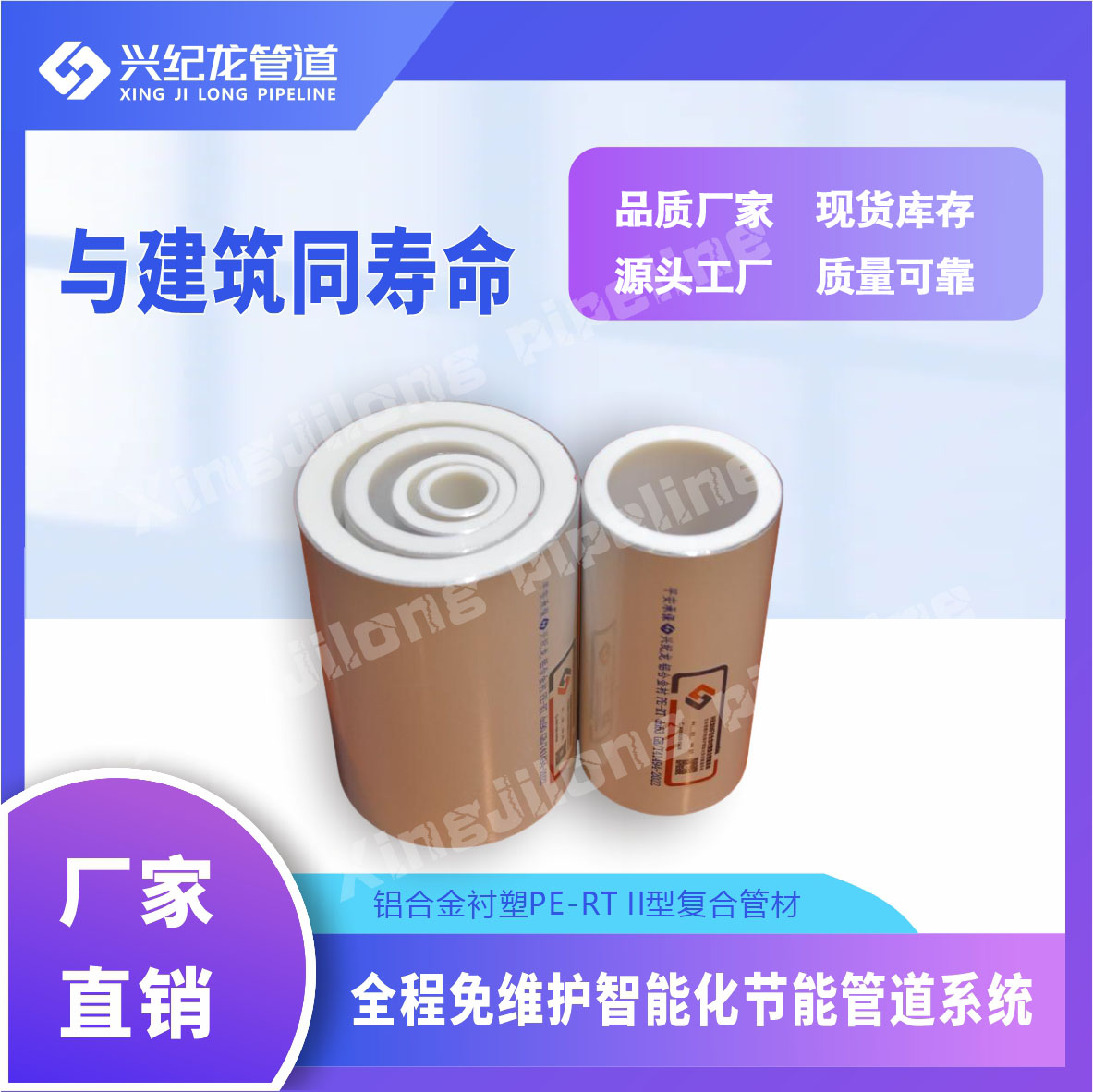 " 铝合金衬塑复合管 铝合金衬PE-RT复合管是兴纪龙管道有限公司于2008年研发的冷热水及暖通专用管材,是目前大力发展的节能、环保、安全健康产品,在给水及zhongyang空调水系统中得到了广泛应用。 1、材料特征 外层铝合金:外层铝合金层采用6063合金无缝铝管,颜色为白色,表面采用高温喷涂树脂材料,使外层铝管不 较强的硬度且提高了铝合金管耐酸碱、耐腐蚀性能,与建筑墙体颜色一致,不易褪色。 内层PE-RT材料:与兴纪龙牌PE-RT产品材料特性相同。 2、执行标准 国标:GB/T 41494-2022 3、成型工艺 铝合金衬塑复合管内外层采用线性预应力复合技术生产成型,整个生产过程在常温下进行,产品的物理力学性能不发生任变化,内外层之间不添加任何胶粘剂,从而使管材管件在使用过程中热熔部位同材质连接。 4、产品优势 ①阻氧效果:铝合金衬管材外层铝合金阻止了氧气的渗入。 ②长寿命:外层铝合金有效阻止了紫外线对内层塑料管材的伤害,提高了使用寿命,保证使用寿命50年。 ③抗冲击性能好:使用过程中不会因偶尔的撞击、敲打和撞击而造成破坏,其中拉伸强度可达到504kg/cm2。 ④耐腐蚀、耐酸碱性强。铝合金村塑管管材外观经特殊工艺处理,解决了铝合金不耐腐蚀不耐酸碱的缺点,大大提高了管材的使用寿命和外观美观效果。 ⑤抗蠕变开裂性能好、内外不分层。 ⑥耐高低温性好:材料的耐高低温性能好(-20~80℃),性能优于一般塑料管材。 ⑦美观华丽:铝合金外观可保证不褪色,管材管件统一为白色,与建筑体颜色统一 ,更加美观华丽。 ⑧质轻:重量是铜塑管的1/6,从而降低了建筑物的承重,并且便于施工。 ⑨不节露,不产生冷凝腐蚀。 5、连接方式 dn63mm以下采用承插热熔连接; dn20mm-dn315mm采用承插电熔连接。 6、应用范围 ①民用建筑给水系统中的给水主立管和户内明装支管 ②zhognyang空调水系统主立管和户内明装支管 ③户外给水主管网 ④直饮水管道输送系统。