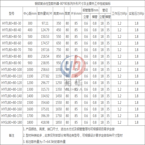 TL80*80铜铝复合暖气片的价格(型号,参数,图片,生产厂家)-裕圣华品牌 【裕华可以为你提供暖气片散热器安装详细资料,供君参考(19本资料)一站式服务,找裕华就对了】 1、裕华资质 2、产品说明书 3、裕华宣传册 4、钢二柱暖气片技术规范 5、家装散热器安装规范 6、工程散热器技术规范 7、采暖系统品质生活 8、安装案例分享(家用和工业) 9、暖气片安装图解 10、真实案例安装施工图解 11、家用暖气片取暖VS地板采暖取暖 12、钢制散热器及配套设施的运用框架完整的分析报告 13、暖气片生产流程 14、煤改电技术规范 15、家用取暖境整治三年行动方案 16、甘肃新村家用取暖改造设计方案 17、倡导绿色健康取暖 18、无水超导散热器技术 19、农村改装取暖解决方案(拿过来就能用) 20、暖气片安装视频(百度、360、搜狗搜索即可观看) 产品图片: 产品细节图片: 型号参数图片: 车间图片: TL80*80铜铝复合暖气片经济性与装饰性由于铜、铝的导热性能非常好,故铜铝散热器的散热能力远远高于其它材料的散热器,其热价比也远高于其他材料的散热器。又由于铜、铝均属于有色金属,它的价值是随着时间而增长的,所以铜铝复合散热器的保值率也远高于其他材料的散热器。综合机械性能铝合金型材以其强度高、水密性及气密性好、导热好、外观精美、加工简便在我国建筑业被广泛应用。尤其是其导热性好的优点近年来已被众多散热器厂家重视。 发货图片: 品牌图片: 营业执照图片: 你们好!欢迎你们的到来。下面就由我来带领您走进裕华、领略裕华、感受裕华,选择裕华,选择一份专属的真挚服务! 走进裕华,“暖”字当先。裕华——温暖如春的捍卫者,这是我们裕华人的统一称谓,含义也是数不胜数。归结起来,其实,就是我们的目标——一个“暖”字。温度之“暖”,源自产品优良的材质和精巧的设计;外观之“暖”,源自精细的做工和坚固的外型结构;裕华之“暖”,源自裕华“暖宝贝”的辛勤付出和汗水挥洒。 领略裕华,理念引导。经营理念是我们公司系统的、根本的管理思想,是裕华人的执业原则,是全体职工的共同信念。正是有这些理念的引导下,裕华才能凝心聚力,支撑起全体员工对“暖”的执着追求。对于顾客,我们始终把他们的要求当成自己工作的标杆,顾客的满意程度就是我们工作的“晴雨表”。对于工作,我们坚持精益求精的工艺和追求卓越的品质,我们以新时代的“匠人”自居,敬业、专注、精益都是我们的人生信条。重合同、勇担责,抱诚守信的裕华人是公司的“活招牌”。 感受裕华,造福亿万用户的梦想!裕华的成功绝不能只是裕华自己的成功,常怀感恩才是每个裕华人自己价值的体现。饮水当思其源,裕华拿下的每一单生意都离不开社会的信任和群众的支持。反哺社会不能只停留在嘴上说说,裕华将会用行动、用汗水、用成果来回馈社会,创造出让顾客满意的产品,就是我们每个裕华人回报给社会母亲的礼物! 不驰于空想,不骛于虚声,裕华将用实际行动“温暖”您的家! 河北裕华采暖设备有限公司 电话:18632819932 邮箱:82513925@qq.com 公司网址:http://www.nqp6.com/ 公司网址:http://www.yuhuagsi.com 公司网址:http://www.yuhuagongs.com/ 地址:河北省衡水市冀州区西环工业园区