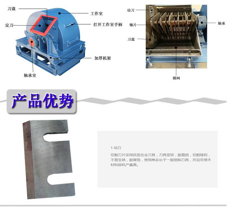 本机可加工、松木、杂木、扬木、杉木、原竹、竹子,由于该机结构紧凑,占地面积小,质量好,消耗功率低,并适合流动作业,广泛适用于中小型刨花板和纤维板生产企业的备料工段,也可用于个体户进行商品木片的生产。(木屑机|木材削片机|木屑粉碎机|木削粉碎机|木削机|木材切片机|原木削片机|盘式木材削片机|鼓式木材削片机)是一种新型的生产木粉前道生产理想的机械设备,他可以将木材、枝叉等原料一次加工成木屑,具有投资少、耗能低、生产率高、经济效益好,使用维修方便等优点。该木屑机特别适用于食用菌培养基中的木屑加工,主要由削屑装置、粉碎装置和风机组成。木材经削屑装置切削后的木屑粒度小,不需晒干就可送进粉碎装置进一步粉碎,粉碎后的木屑成品由风机送至集料地点。整套设备只用一部电动机带动,结构简单,布置紧凑,售价便宜,工作稳定、耗能少,产量高、木屑成品质量好,加工成本低。还可用于竹、茅草、玉米秆、高粱秆等纤维质秆状物料的切屑。该木屑机也可作刨花板、锯末板高密度板的原料生产用。