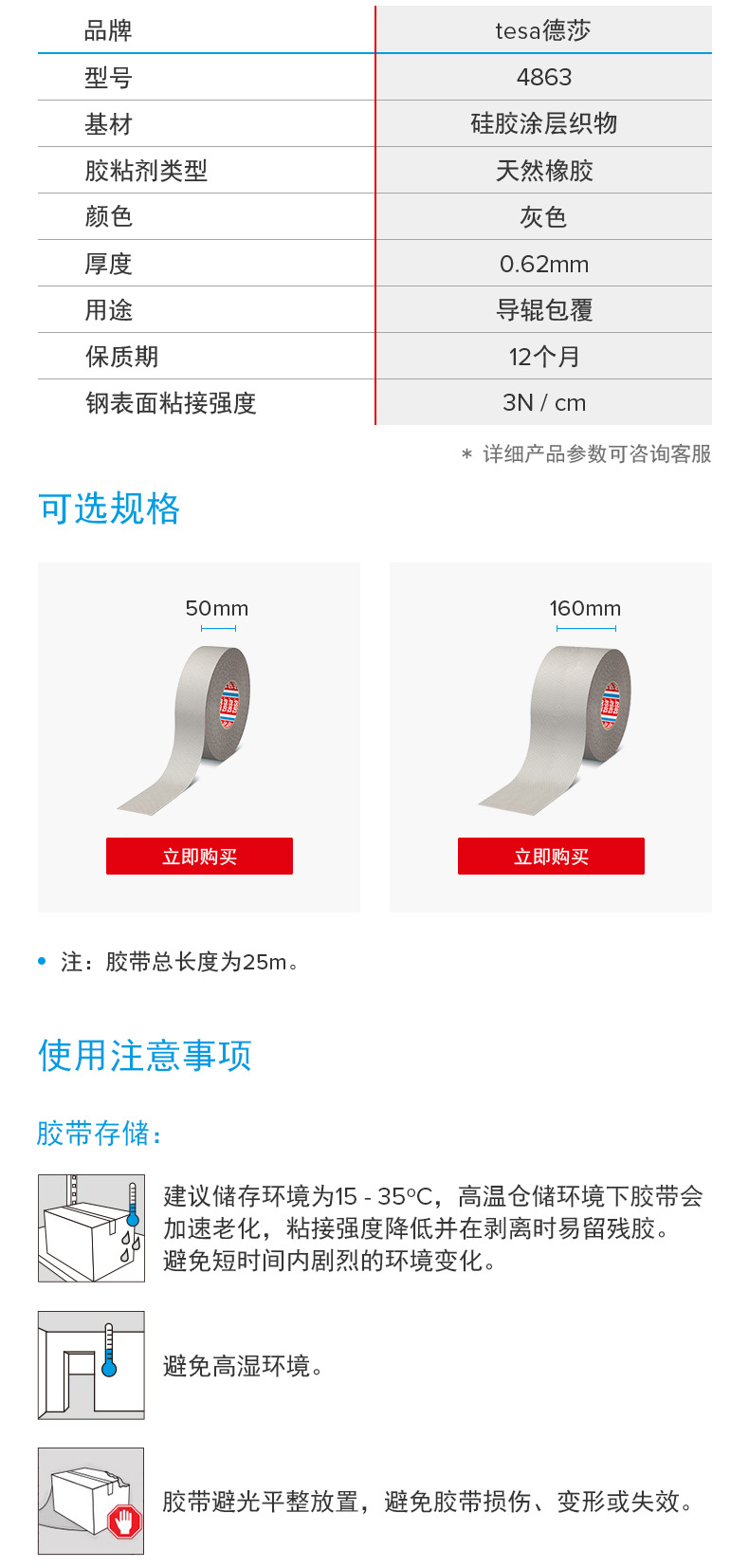 tesa德莎4863辊轴/滚轮防滑防粘鸡皮胶带 德莎4863防滑定位胶带 德莎4863防粘鸡皮胶带 产品型号:tesa德莎4863 产品规格:50mm*25m 产品名称:防粘防滑胶带/鸡皮胶带 产品厚度:0.62mm 产品颜色:灰白色 产品基材:聚硅氧烷涂覆布 胶系: 橡胶 长期耐温性:100(℃) 短期耐温性:150(℃) 适用范围:防粘 加工定制:是 延伸系数:- 用途: 用于包裹滚筒起防滑、防粘作 tesa德莎4863防粘胶带 鸡皮胶带 硅橡胶涂覆布胶带突出“握”属性 产品特点: tesa打印机的朋友?4863由经过特殊处理的硅橡胶涂层织物覆盖。这种压纹表面“ 粘性”物质具有很强的抗尚未提供了可靠的防滑效果在平滑的基材上。防滑性能 的化和延长的压花表面。 主要应用: tesa打印机的朋友4863是专为辊卷绕应用。在许多情况下,一个新的覆盖层,不从机器中取出滚子的情况下,可施加。 这些行业包括: *印刷业 *纺织行业 *胶带制造商 *一般,基于web的处理及加工行业 技术数据: *背衬材料硅胶涂层布 *总厚度620微米 *不同的粘接剂,天然橡胶 *附着力钢3.5牛顿/厘米 *内衬pp类型 *衬垫厚度80微米 *表面纹理浮雕 http://www.smdjn.com