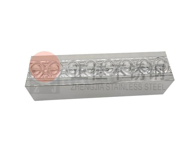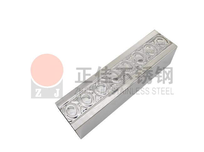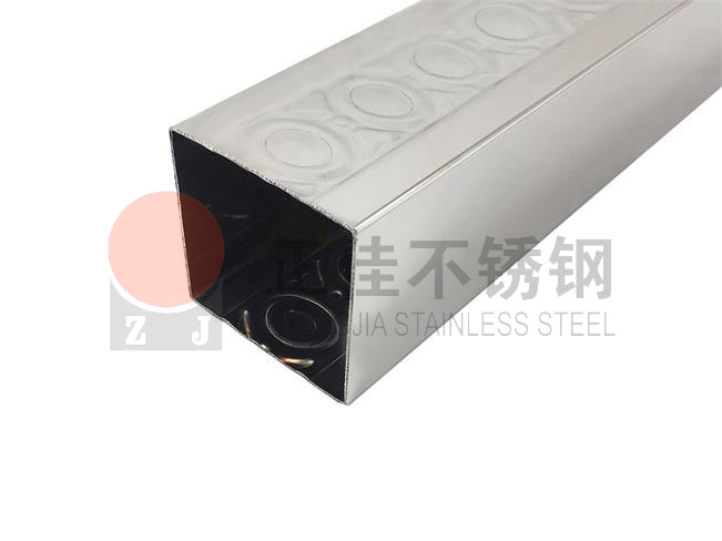 产品介绍 采用优质304不锈钢方管,耐腐蚀性能显著,表面美观耐看,广泛应用于制作各种不锈钢制品:楼梯栏杆扶手、屏风、大门、防盗网等. 品名:50x50 元宝双面不锈钢花纹管 产品详情 2、严格控制尺寸 可达?0.05mm 3、创新压花工艺 保证花纹完整清晰 无偏位