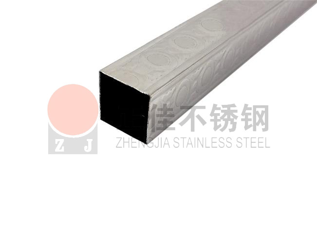 产品介绍 采用优质304不锈钢方管,耐腐蚀性能显著,表面美观耐看,广泛应用于制作各种不锈钢制品:楼梯栏杆扶手、屏风、大门、防盗网等. 品名:25x25 四面元宝不锈钢装饰管 材质:304不锈钢(06Cr19Ni10) 形状:方管 规格:25*25 长度:6000mm(定制不定尺) 厚度:0.8mm 花纹:四面元宝花纹(可定制花纹) 颜色:本色、钛金色、黑钛色、古铜色、玫瑰金色等 执行标准:YB/T5363-2016 产品详情 1、采用100%精炼炉钢材 严格保证不锈钢装饰管原材质量 2、严格控制尺寸 可达?0.05mm 3、创新压花工艺 保证花纹完整清晰 无偏位