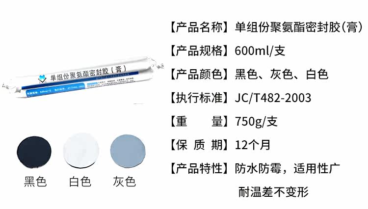 组份聚氨酯密密封胶是一种无溶剂单组分室温固化密封胶。该密封胶呈膏状,可挤出或涂抹施工。有抗下垂性,嵌填垂直接缝和顶缝不流淌。 固化后的胶层为橡胶状,有弹性。对金属、橡胶、木材、水泥构件、陶瓷、玻璃等有粘附性。密封胶是用来填充空隙(孔洞、接头、接缝等)的材料,兼备粘接和密封两大功能。 特性 1.性能可调范围宽、适应性强; 2.耐磨性能好; 3.机械强度大; 4.粘接性能好; 5.弹性好,具有优良的复原性,可用于动态接缝; 6.低温柔性好; 7.耐候性好,使用寿命长达15~20年; 8.耐油性好; 9.耐生物老化; 10.价格适中。 优点 “单组分”主要是相对“双组分”而言的,有一种双组分聚氨酯胶,在使用的时候需要将A、B组分,按比例均匀地混合才能起到粘接密封的效果;而单组分则直接使用,方便、简洁,施工简便。“湿固化”是指,单组分聚氨酯胶是利用于空气中的微量的水蒸气反应而固化,与基材表面的活性基团反应起到粘接作用。 与传统的硅酮胶相比,聚氨酯胶具有3倍以上的高伸长率和2倍以上的粘接强度。 单组分聚氨酯胶完全固化后,可以用于饮水工程,已经经过权威测试的。 使用方法 在使用过程中,不允许使用的单组份聚氨酯密封胶接触到对水敏感的漆面。肥皂和清洁剂能使未固化的胶释放出碳黑,因此不能用作修整剂。 对于有关使用、储存及化学品处理的信息及建议,用户应参照单组份聚氨酯密封胶使用的新的数据表,其包括了物理的、生态学的、毒理学的及其他与相关的数据。对淡水、海水、石灰水、污水流、稀酸及稀碱具有阻性;对燃油、矿物油、植物油、动物脂肪和原油具有短暂的阻性;对有机酸、酒精、浓缩的矿物酸、浓碱和溶剂不具有阻性。因此单组份聚氨酯密封胶在使用过程中也应注意这些产品的各自性能。