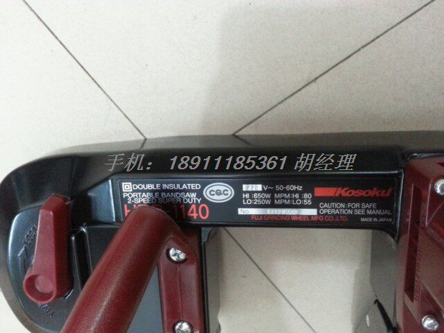 品牌: 日本高速颜色分类: HRB-1140一台 进口锯条 国产锯条 皮带HRB-1140 便携式高速电锯切断能力:○Φ120mm 120?115mm功率:AC220,V650w重量:6kg
