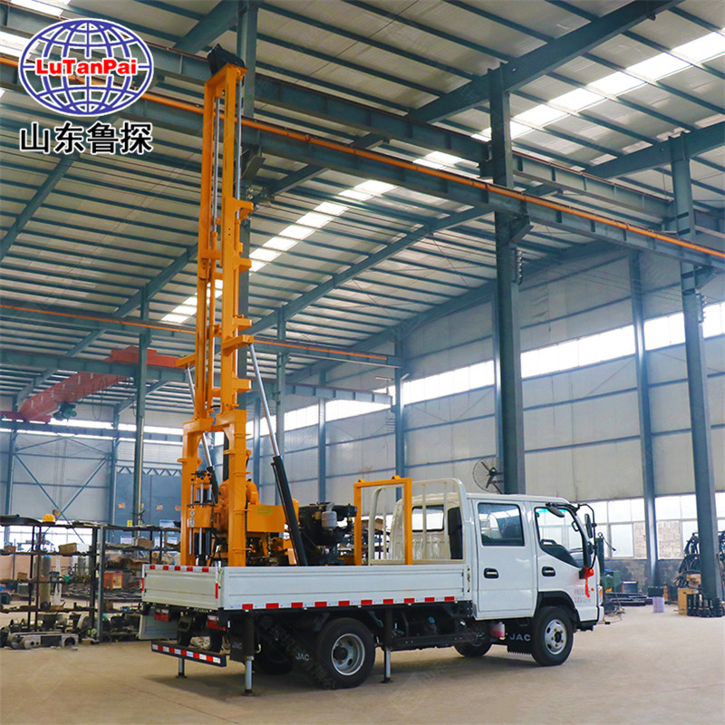 山东鲁探机械有限公司坐落于素有“孔孟之乡、礼仪之邦”美称的山东省济宁市。我公司作为济宁市一家本土企业,秉承儒家文化,弘扬“立己立人、达己达人”的儒商精神,长期致力于勘探钻机、水井钻机、工程钻机和矿用钻机等一系列钻机,欢迎新老客户前来洽谈业务。 XYC-200车载式水井钻机 一、XYC-200车载式水井钻机主要特点 1、 XYC-200车载钻机为多功能液压车载立轴回转式钻机 2、 汽车底盘采用轻卡汽车底盘,钻机传动系统及卷扬,泥浆泵等重要附件安装在此底盘上,布局合理紧凑,操作简便 3、 配置BW-160型泥浆泵,压力高,流量大,保障钻进深度及钻孔口径 4、 钻机自配移动装置,可以实现钻机主机的自身前后移动,便于井口操作 5、 钻机塔架液压起落式自动伸缩钻塔,操作安稳方便。 二、XYC-200车载式水井钻机适应范围 地质普查勘探,道路及高层建筑物基础勘探,以及各种混凝土结构检查孔,江河堤坝,路基灌浆孔钻孔和直接灌浆,民用水井等。 三、XYC-200车载式水井钻机技术参数 技术参数 钻孔深度(m) 30-200 钻孔直径(mm) 300-75 钻孔倾角(?) 90-75 立轴转速(r/min分钟) 64、128、287、557 立轴行程(mm) 450 主卷扬升降能力(单绳)(Kg) 1600 主卷扬容绳量(m) 35 卷筒升降速度(r/s) 17、35、75、151 钢丝绳直径(mm) 12.5 塔高(mm) 7000 钻塔高度(mm) 6500 主动钻杆(mm) 59*53 钻杆(mm) 42、50、60 钻机重量(kg) 1150 发动机 型号 ZS1115柴油发动机 额定功率 14.7kw/2200rpm BW-160型泥浆泵 额定流量(L/min分钟) 160 额定压力(Mpa) 1.3 驱动功率(kw) 5.15 主机重量(kg) 190 外形尺寸(mm) 1110*725*965 汽车底盘 轻卡(车载钻机图片中底盘仅供参考) 山东鲁探机械有限公司供应液压回转式水井钻机,主要型号有:HZ-130Y、HZ-130YY、XYX-130、XYD-130、HZ-200Y、HZ-200YY、XYX-200、XYD-200、XYC-200A、XYC-200。
