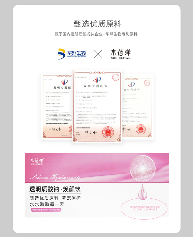 水蓓弹透明质酸钠口服液 可以口服玻尿酸饮品【华熙生物原料】 山东康美药业有限公司是一家集大健康功能性食品研发、生产加工、销售于一体的综合性高新技术企业,公司专注于特膳食品、口服玻尿酸、口服液、固体饮料、易拉罐饮料、压片糖果、代用茶、袋泡茶、即食燕窝等食品贴牌加工,生产与研发,欢迎来场参观考察。本公司以提供大健康功能性食品OEM/ODM贴牌定制服务为主。 一、来样加工:客户提出产品查找要求或相近样品,我们负责配方设计,小试打样,客户确认,生产控制 二、来料加工:客户提供原料,包材或半成品,我们负责严格把控生产流程,保障灌装,包装的优良品质 三、来配方加工:客户提供产品配方,我们的技术部门给予意见、确认,按照客户的要求生产出半成品或成品 四、包工包料:为您提供一站式全方位的服务,从原料、配方、包装等一切由厂家负责。