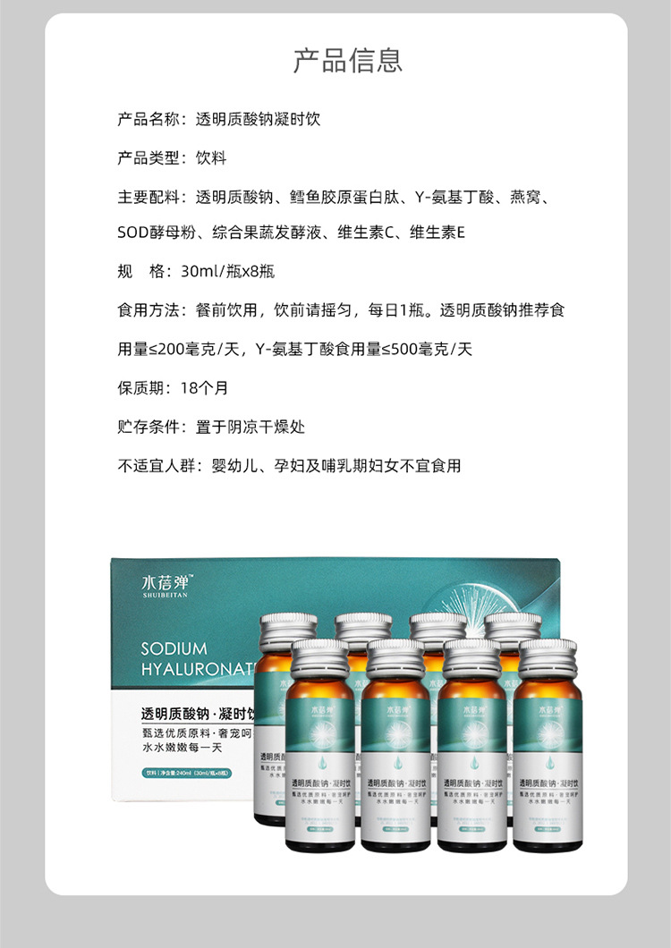 【华熙生物】水蓓弹透明质酸钠凝时饮 玻尿酸Y-氨基丁酸口服液贴牌代工厂家 山东康美药业有限公司是一家集大健康功能性食品研发、生产加工、销售于一体的综合性高新技术企业,公司专注于特膳食品、口服玻尿酸、口服液、固体饮料、易拉罐饮料、压片糖果、代用茶、袋泡茶、即食燕窝等食品贴牌加工,生产与研发,欢迎来场参观考察。本公司以提供大健康功能性食品OEM/ODM贴牌定制服务为主。 一、来样加工:客户提出产品查找要求或相近样品,我们负责配方设计,小试打样,客户确认,生产控制 二、来料加工:客户提供原料,包材或半成品,我们负责严格把控生产流程,保障灌装,包装的优良品质 三、来配方加工:客户提供产品配方,我们的技术部门给予意见、确认,按照客户的要求生产出半成品或成品 四、包工包料:为您提供一站式全方位的服务,从原料、配方、包装等一切由厂家负责。