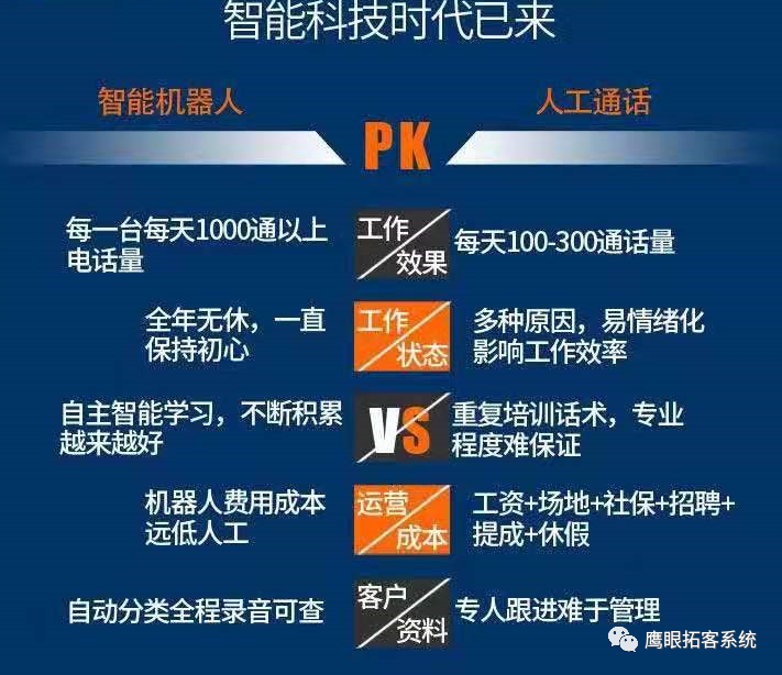 而ai电销机器人则完全不会有这种烦恼: 1.高效工作 ai电销机器人无需休息,连续7?24小时在线,海量并发、一天可拨打上万通电话,提高企业坐席服务效率,比人工更高效。 且对接的是线路,打一通换一个电话,防封防限制,无须办卡,简单方便。 2、成本低 ai电销机器人一年的成本仅仅相当于一个人工一个月的工资,效率却是普通人工5-10倍,非常划算! 3、支持自主学习 ai电销机器人话术配置中,机器人不会回复的问题,后台会自动总结,售后随时添加配置上去,下次客户再问,机器人就会回复了,越用越智能。人工拨打电话,胜在灵活性高,不管客户提出什么问题,一个成熟的销售都可自由应答。不熟悉的新人,做好培训也能长篇大论聊天。但是人工电销也有很大的弊端,比如说:封号、每天只能拨打200-300通电话、效率低、成本高、心态容易被不断的拒绝影响、培训完员工流失损失严重等等。更多详情:15838163241