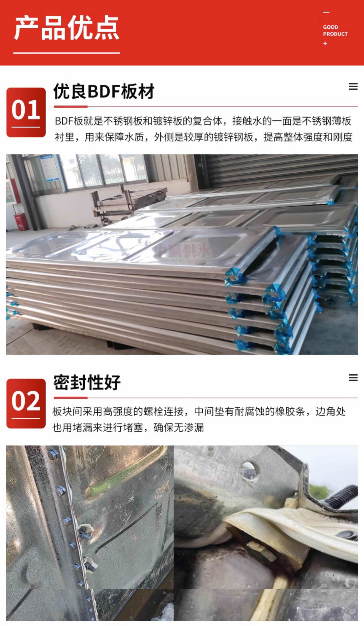 天津地埋式一体化消防水池设备地埋式水箱通常使用的抗浮方式就是将基础做成整块阀板,底板直接采用的是混凝土平台基础,通过预埋件及二次灌浆与侧板连接。虽然板材都是由3mm镀锌钢板和0.4mm不锈钢复合模压而成的,但是普通的地埋式消防泵站用的都是1m*1m规格的BDF复合板。而无底板抗浮式地埋箱泵一体化的侧板采用了1M*3M规格的BDF复合板。