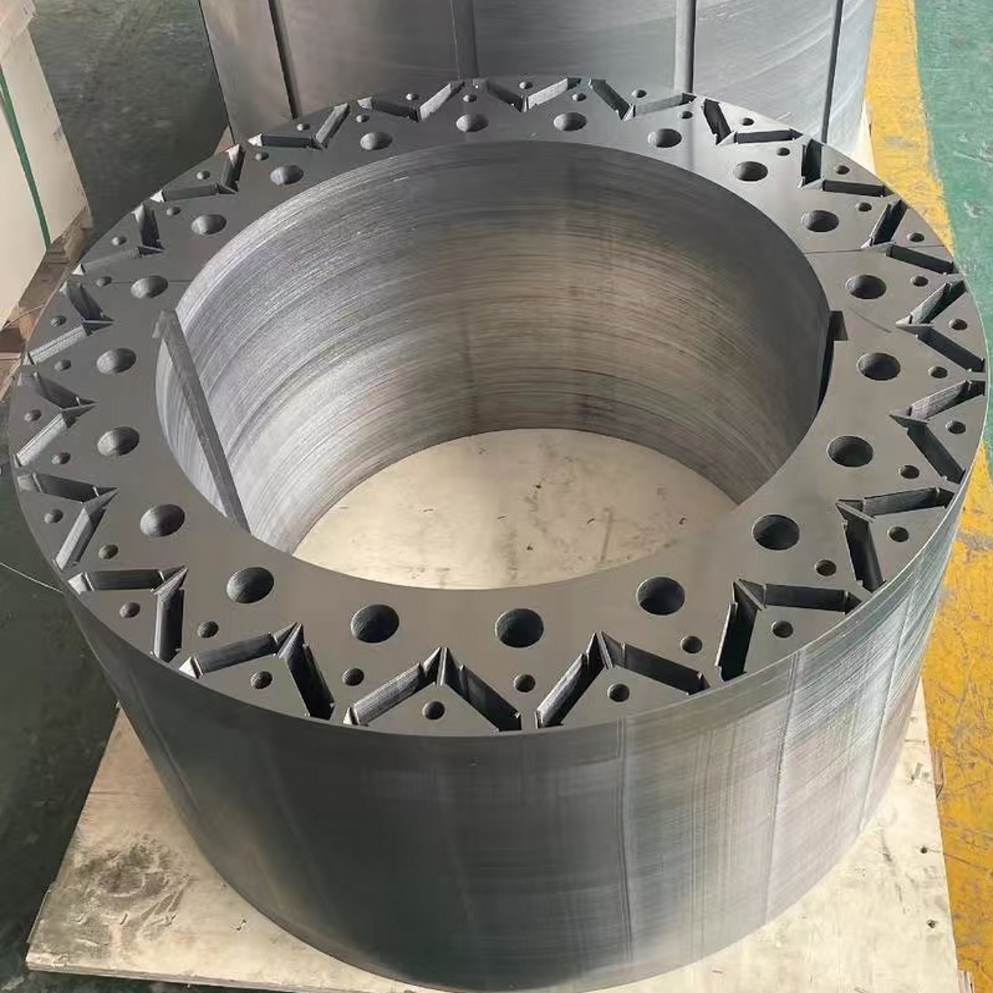 3)冲片毛刺应符合图样的要求。叠装后,定子槽形的宽度只能比冲片的宽度尺寸小0.1~0.2mm。 4)冲片的绝缘处理。 现国内电机行业对冲片的绝缘处理有3种: ①涂绝缘漆,铁心叠装时装压系数为0.92; ②氧化处理,装压系数为0.95; ③靠硅钢片自身带的绝缘漆膜,装压系数为0.97。 以上3种以氧化冲片在绝缘处理形成氧化膜的同时,因处理时冲片要加热至500℃左右,这可以消除一部分毛刺,同时也消除了一部分冲制过程中残留的内应力,对降低铁损毛、提高功率因数均有益。 靠硅钢片自带的绝缘膜形成的片间绝缘,能将冲片在刃口处进行酸洗,若毛刺偏大,先除掉毛刺,这同样有益于降低铁损耗,提高功率因数。